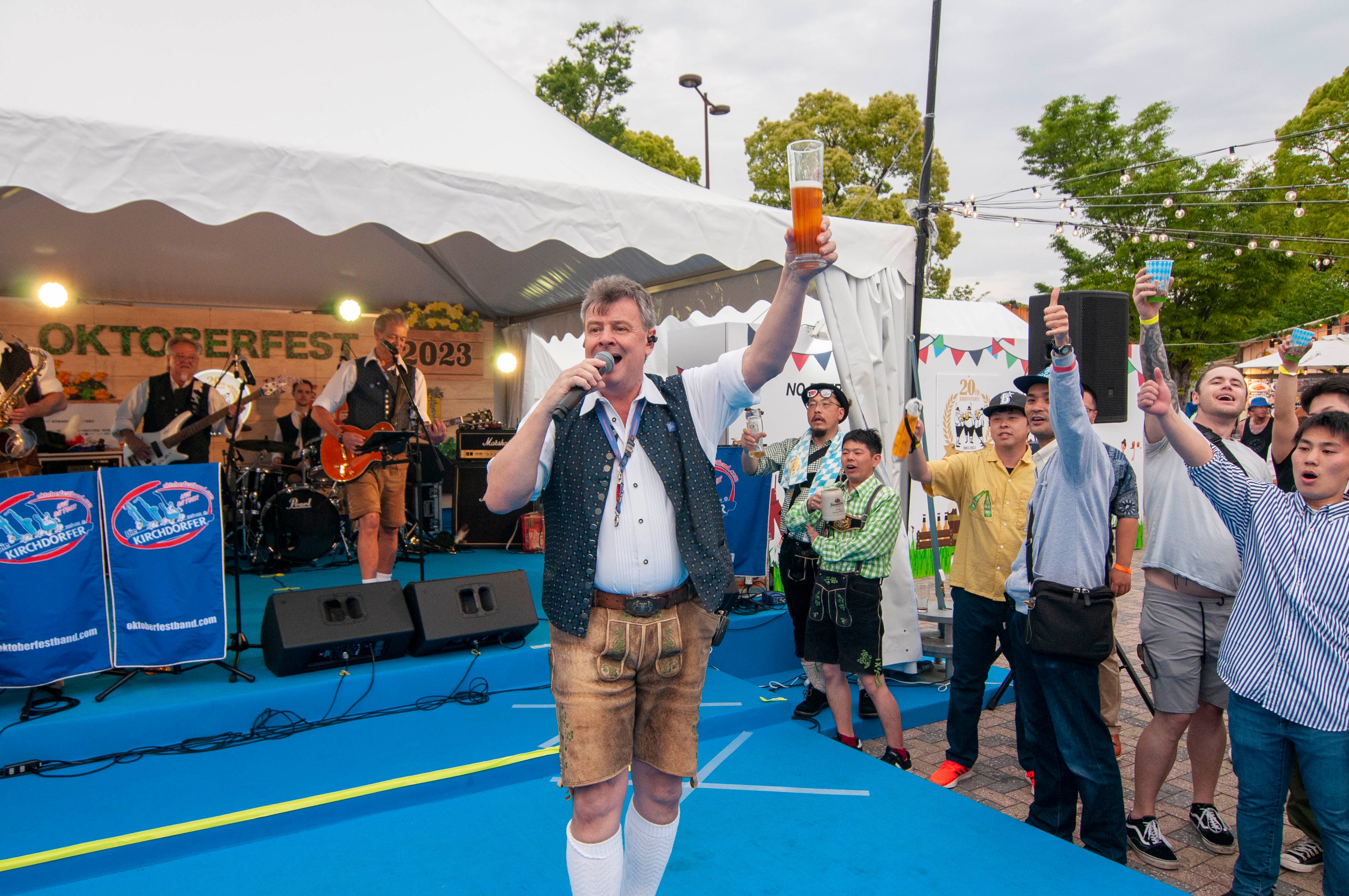 また、テントの中にあるステージでは本場ドイツのオクトーバーフェスト ハッカー・プショールの公式バンド「ディー・キルヒドルファー(Die Kirchdorfer)」の演奏を毎日開催!みんなでドイツの乾杯の歌「アイン・プロージット(Ein Prosit)」を歌えばビアテントの中のみんなと仲良くなれること間違いなし!