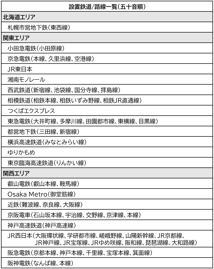 ※ 当社集計データに基づく、鉄道駅構内のモバイルバッテリーレンタルスタンドの数。駅内の店舗(コンビニ・飲食店・商業施設等)への設置は除く。