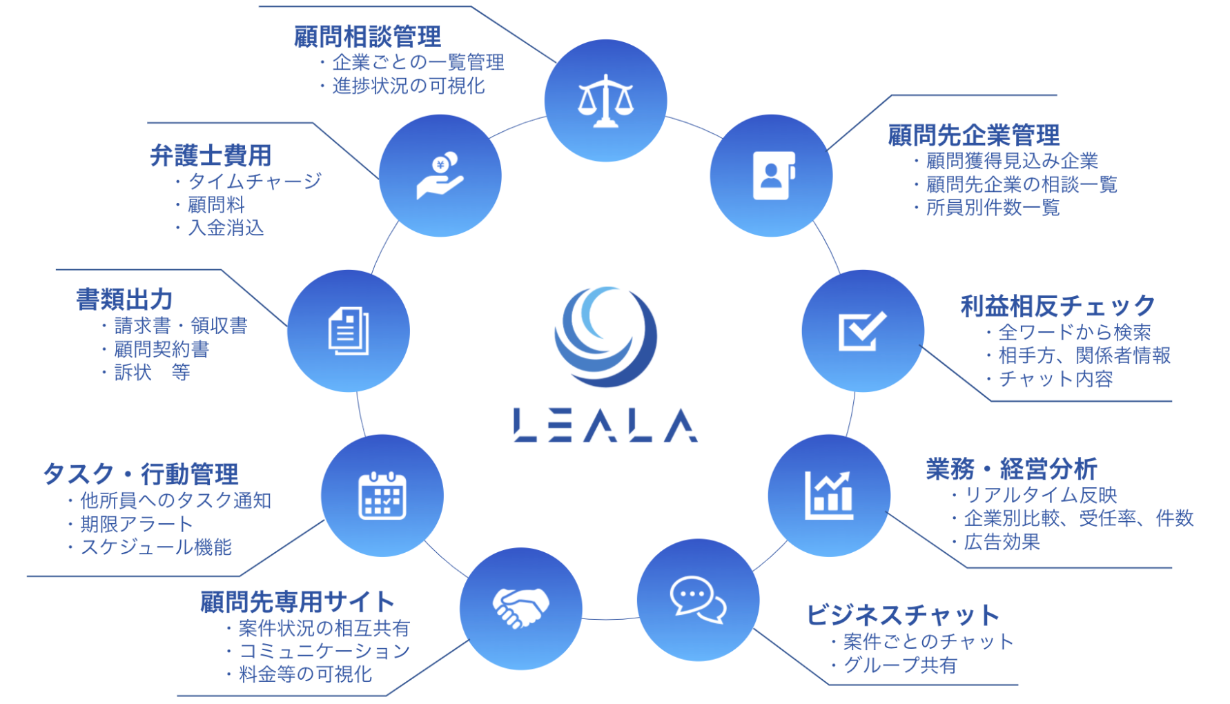 提供サービス:弁護士・法律事務所向けクラウド業務管理システム LEALA