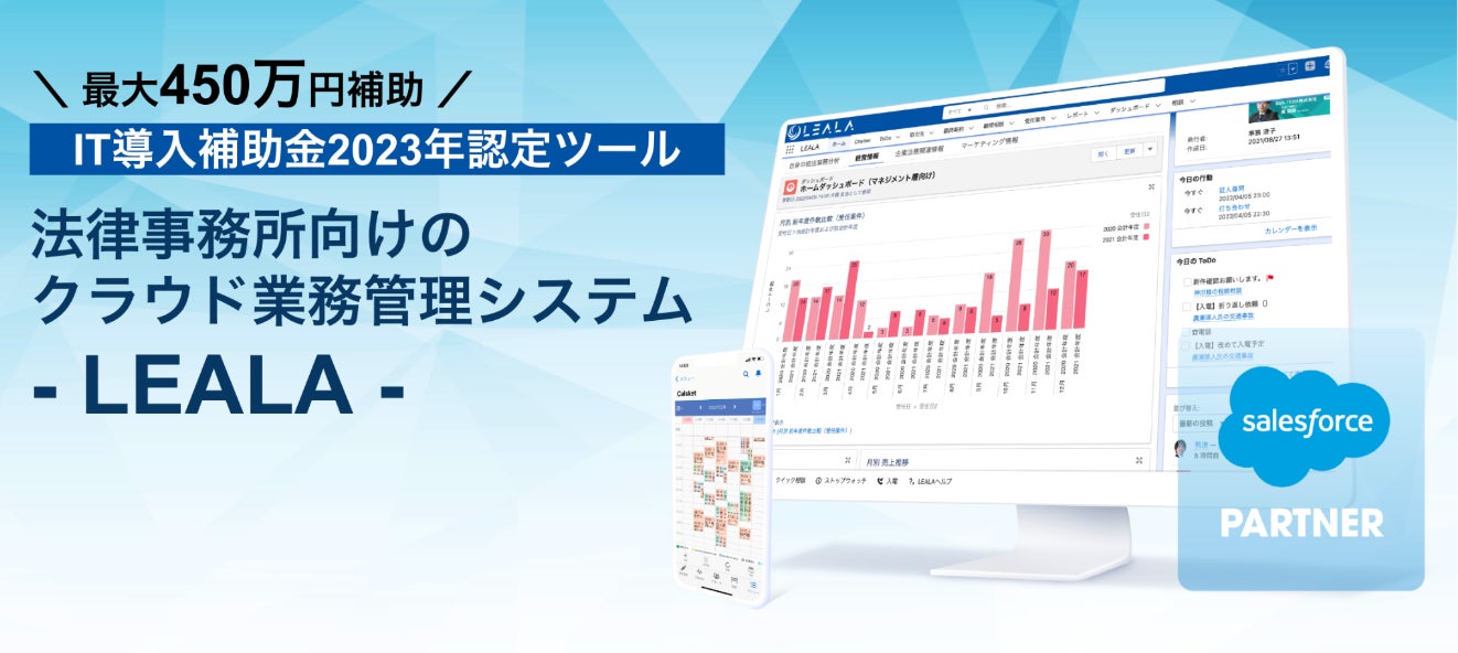 株式会社レアラ(本社:東京都中央区、代表取締役:林 和成)は、このたび経済産業省が推進する「IT導入補助金2023」において、IT導入支援事業者に採択されました。また、当社が提供する弁護士・法律事務所向けクラウド業務管理システム「LEALA」が、対象ITツールとして認定されましたので併せてお知らせします。