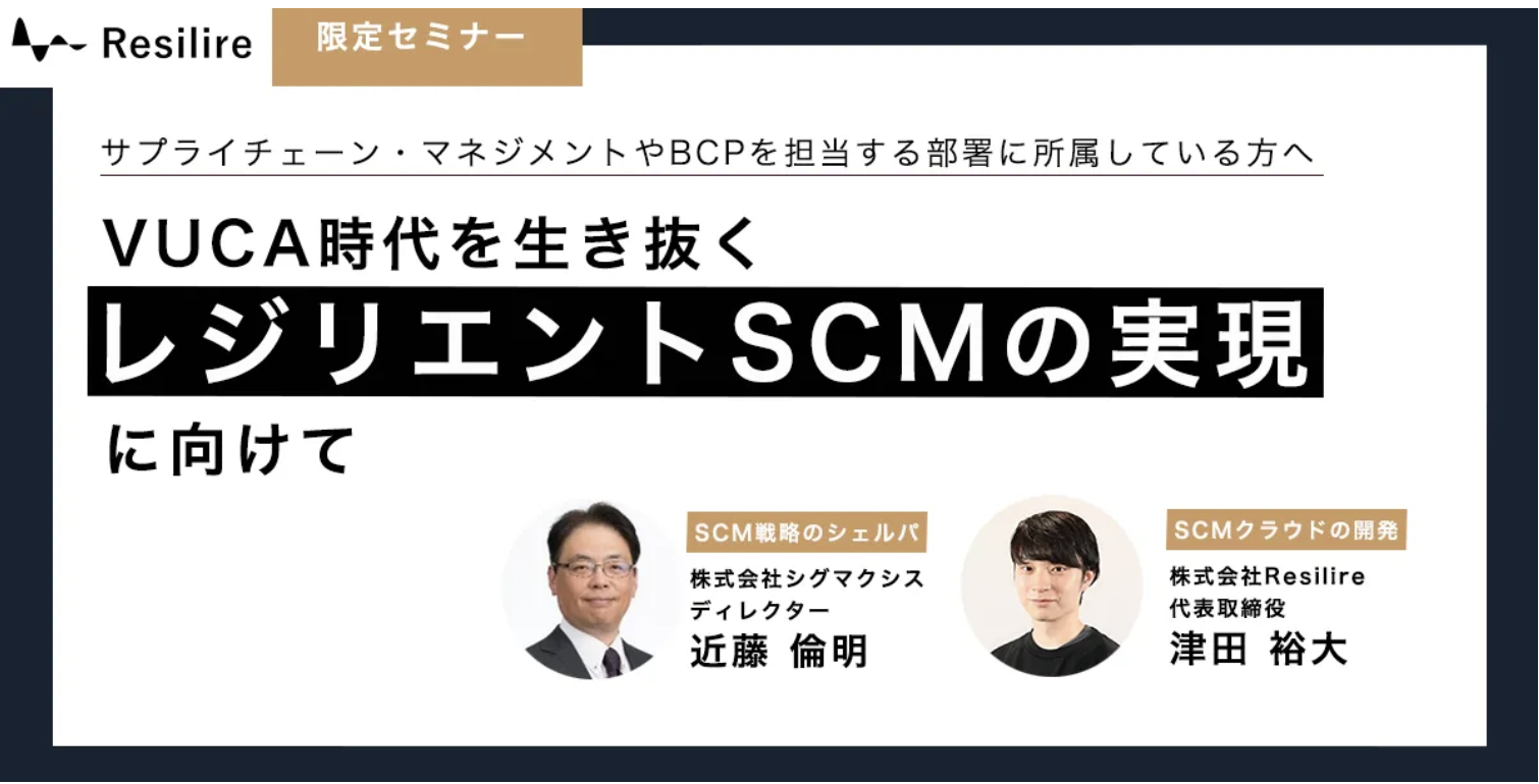 また、後半では、レジリエントSCMを支えるテクノロジーやクラウドサービスの活用を実際の事例を元にお伝えいたします。