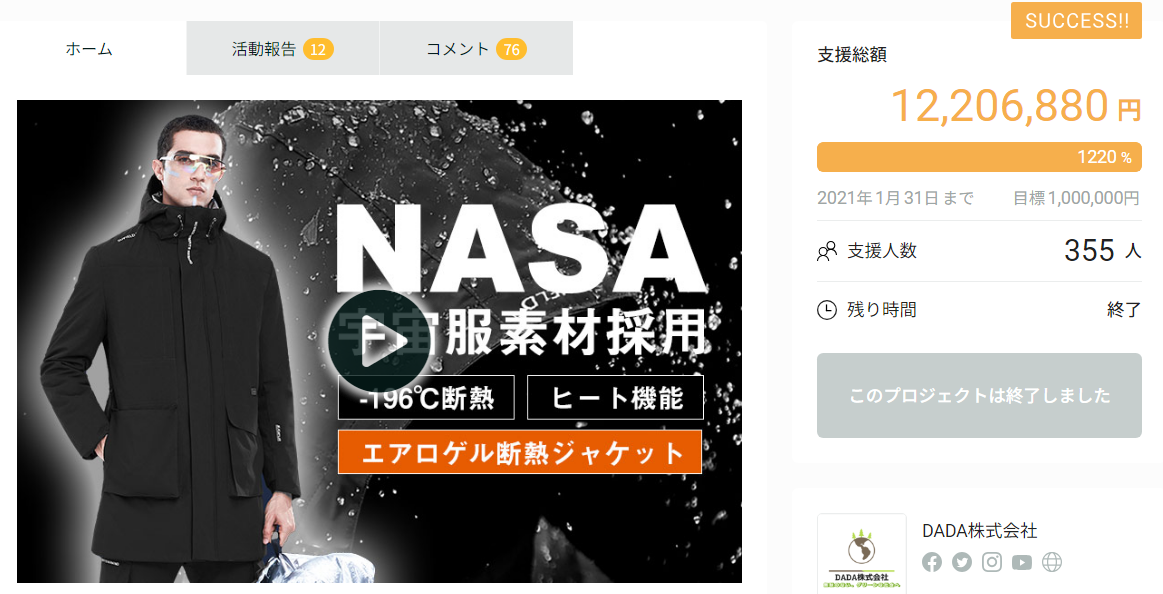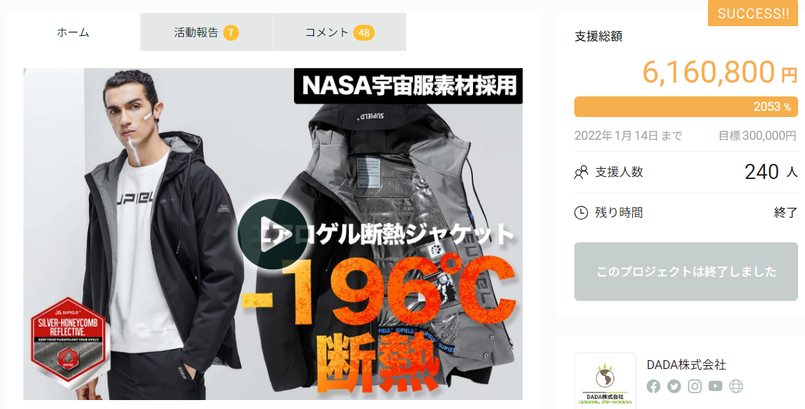 宇宙服に使用されている断熱素材「エアロゲル」をアパレルに応用した超ハイテク耐寒アウター卸販売を開始!