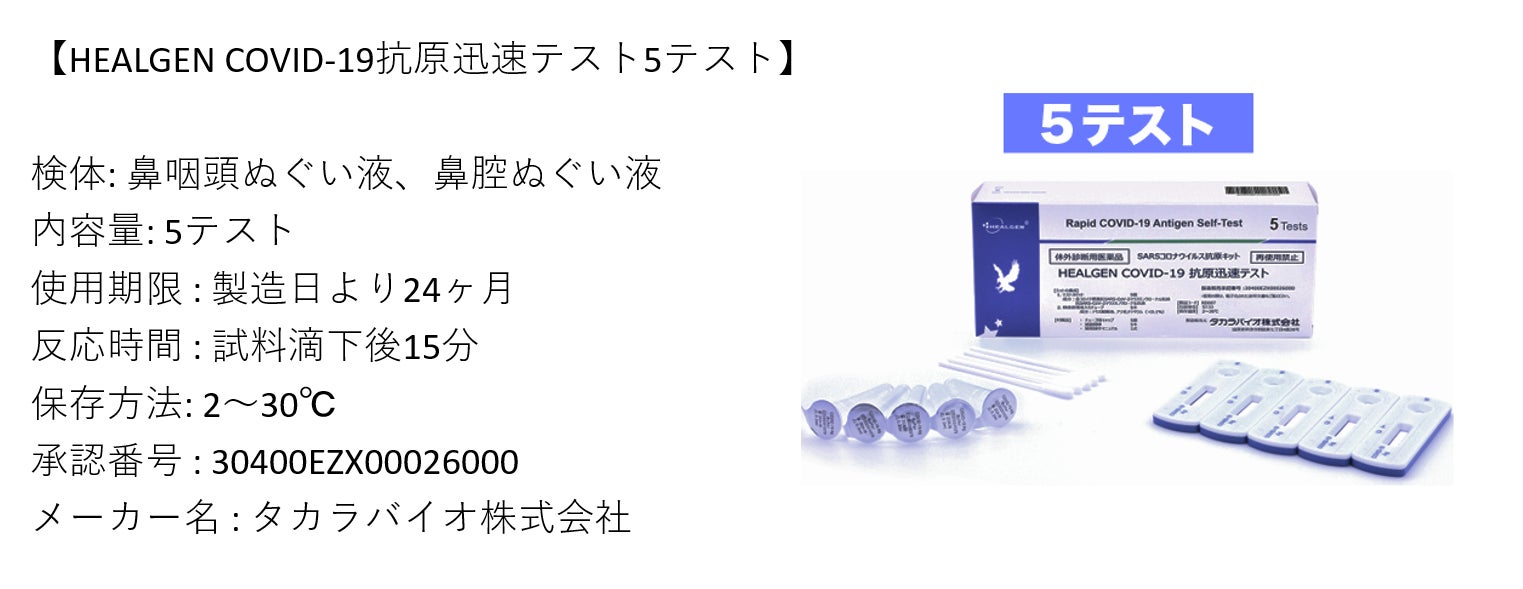 商品:4メーカー・5種類の抗原検査キット(厚労省承認・体外診断医薬品)