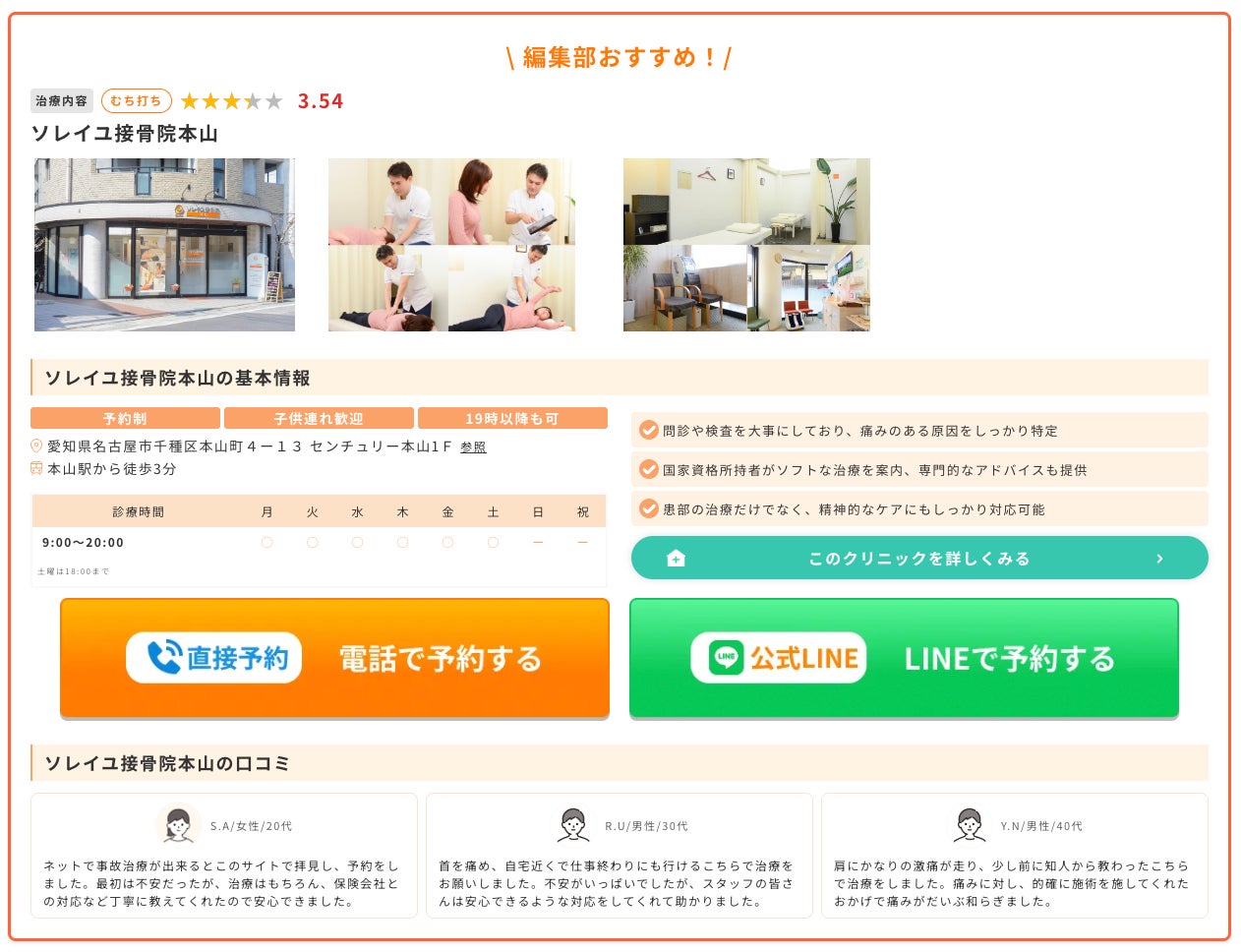 事故治療ナビスタッフが特に信頼する整骨院には直接予約も可能