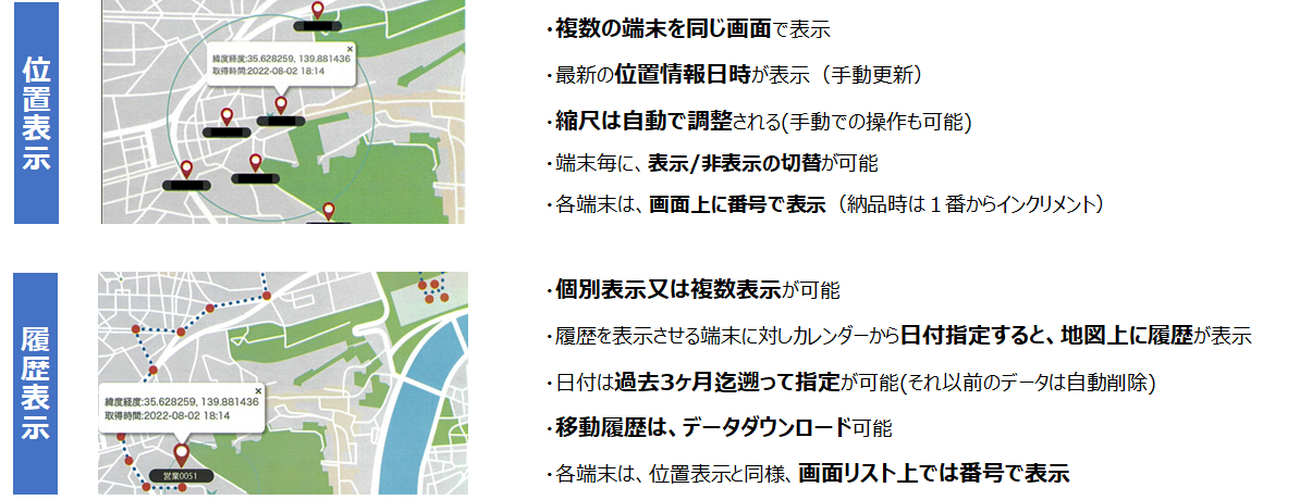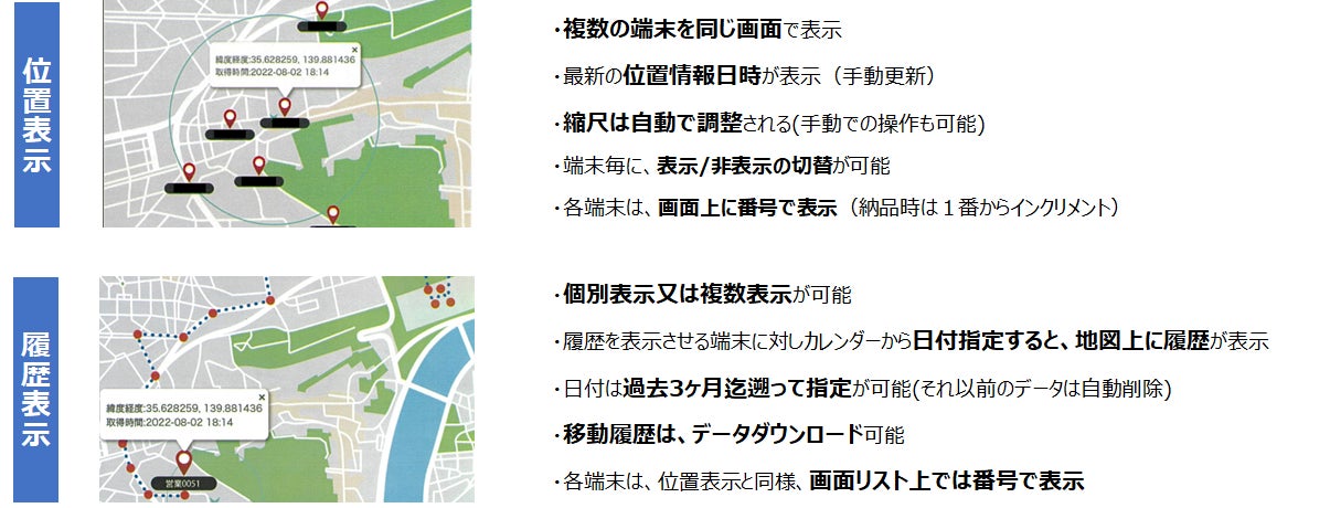 「GeoPita」はGPS※1トラッカーで収集した位置情報を一括管理できるシステムで、位置のリアルタイム把握、安全エリアの設定、行動履歴の可視化が可能になります。「GeoPita」の導入により、子どもたちの安全確保と安心した活動の推進を実現します。
