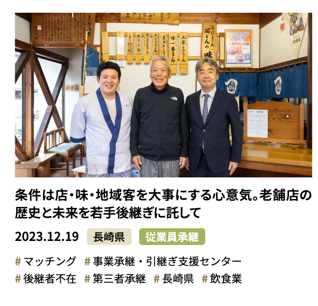 条件は店・味・地域客を大事にする心意気。老舗店の歴史と未来を若手後継ぎに託して