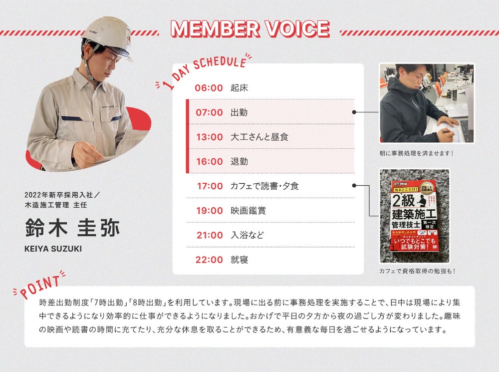 建設業「2024年問題」解決に向けた制度を新設。社員が働き方を選択できる “時差出勤制度&朝活インセンティブ制度” を本格導入開始。