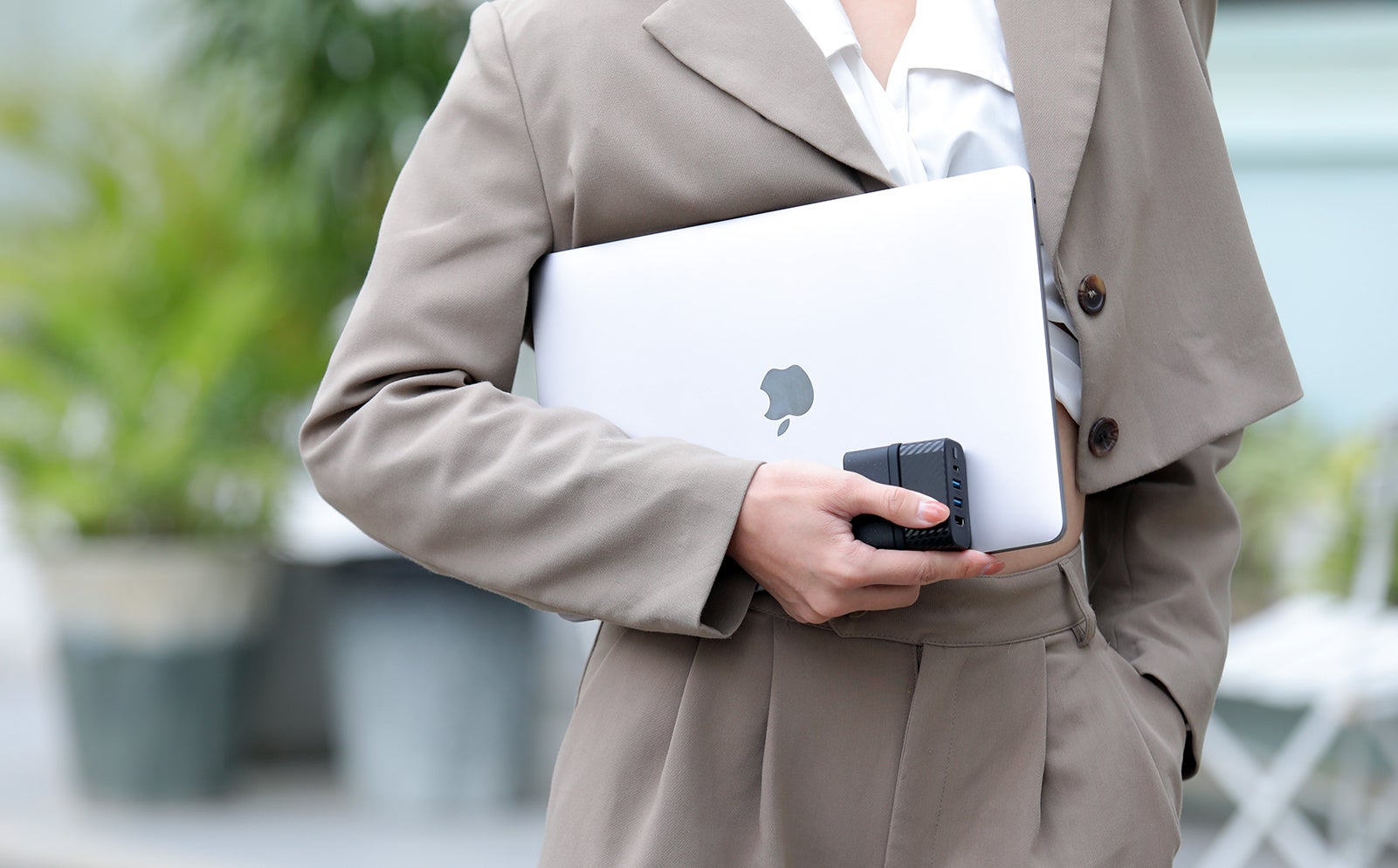 電力密度の高いGaNを採用し、小型ながらも高電力を維持。 わずか2時間で13インチ MacBook Proをフル充電できます。