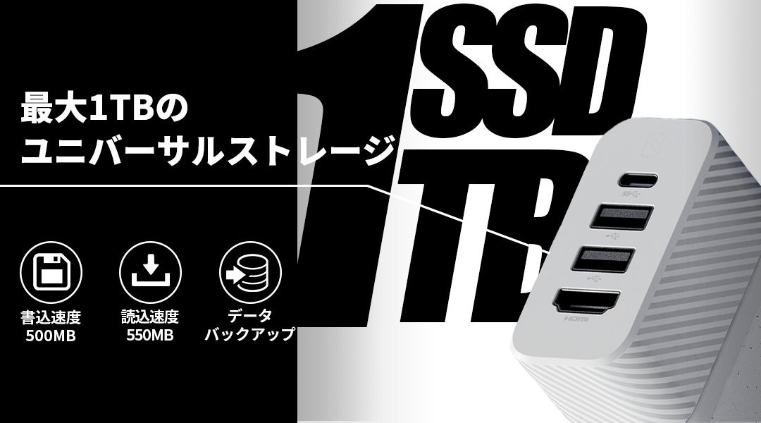 高速充電器・マルチポートHUB・最大1TBのストレージがひとつになったオールインワンアダプタCyberize One。 多機能を揃えながらカードサイズのコンパクトさで、スマートなデジタルライフを実現します。
