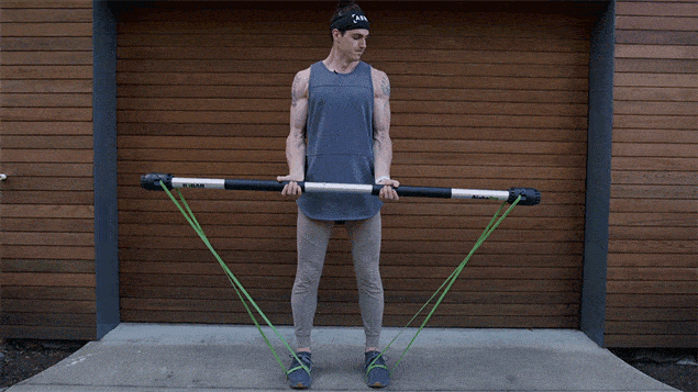 分割可能なアルミ合金製チューブ、強度毎に交換可能なレジスタンスバンドからなるR3BARが1本で全身のエクササイズを可能にします。