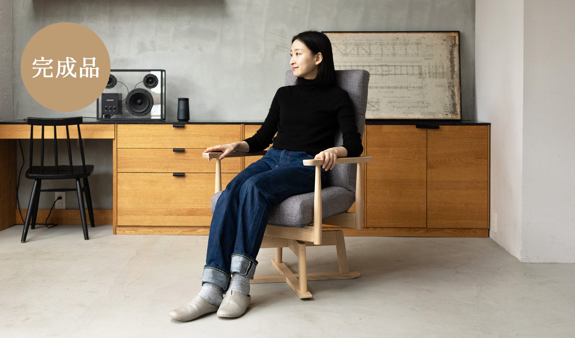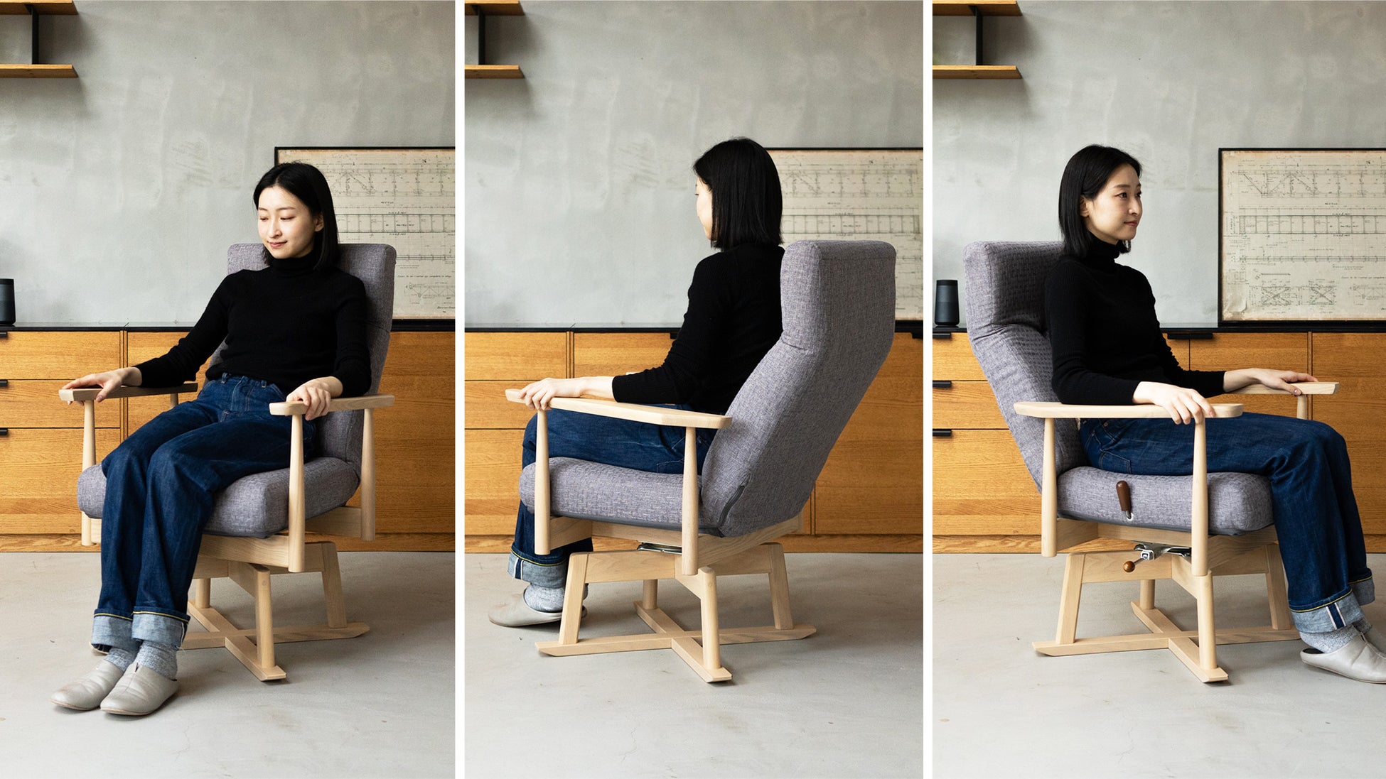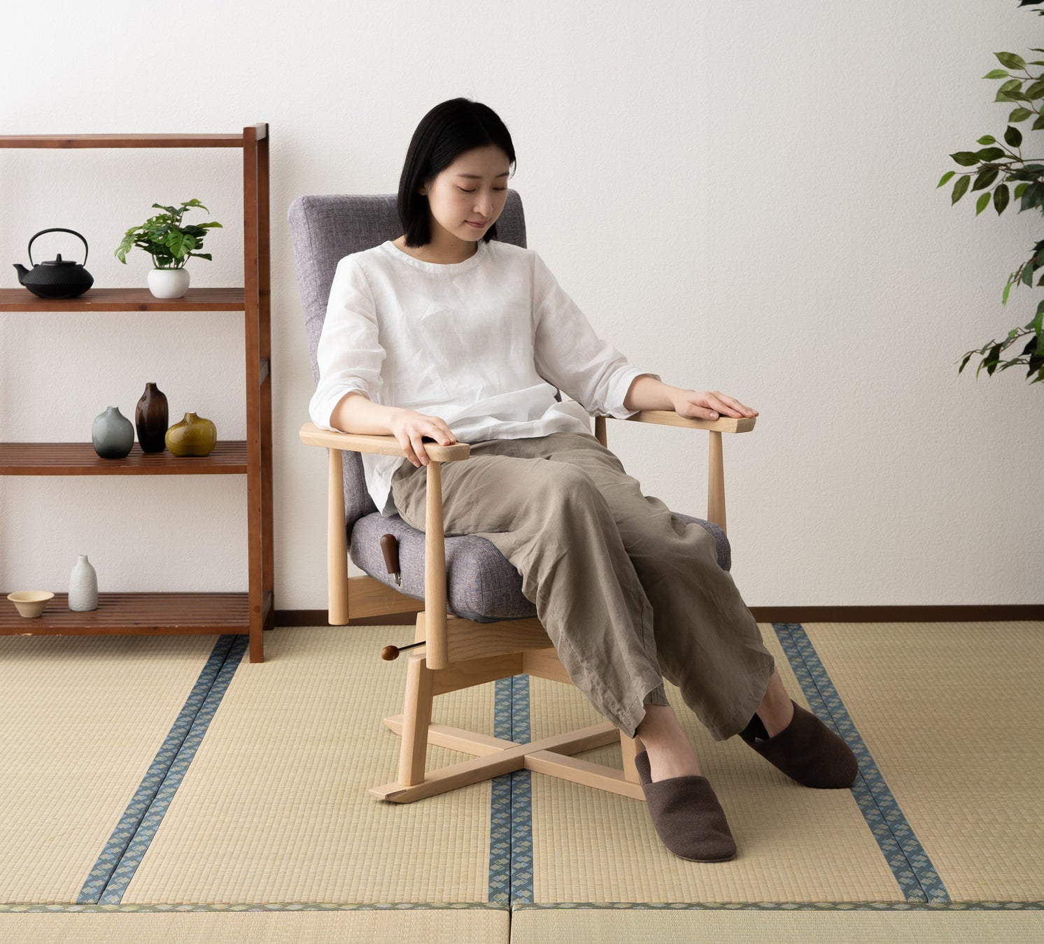 頑強なタモ無垢材を使った高座椅子は、座り心地や立ち上がりのしやすさ、取り回しのしやすさといった機能性を持ちながら、繊細なデザイン性から視覚的にも美しく、置く場所を選びません。