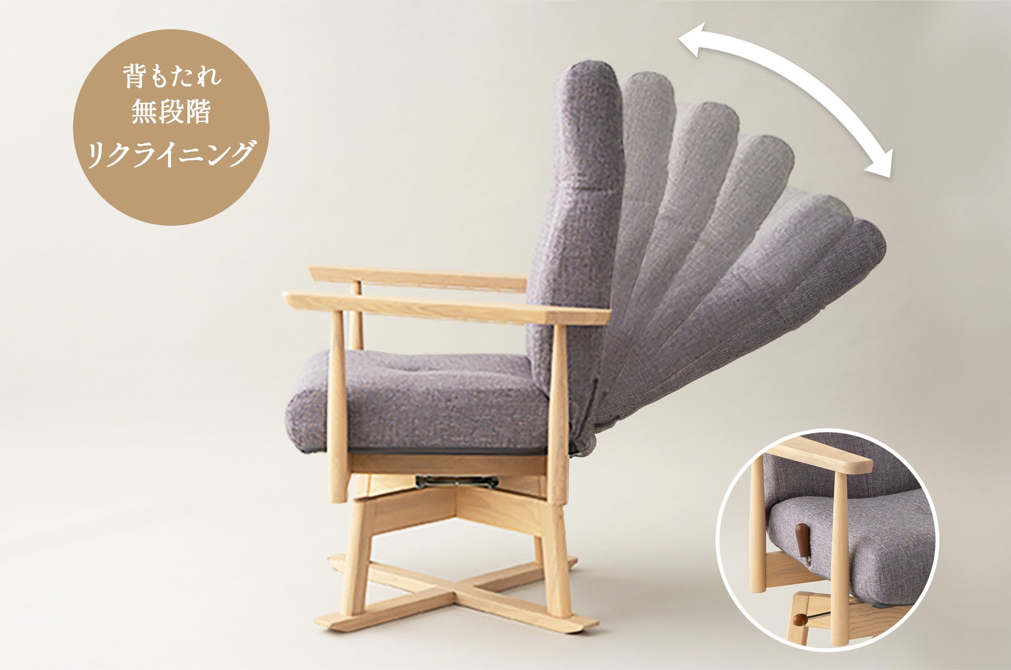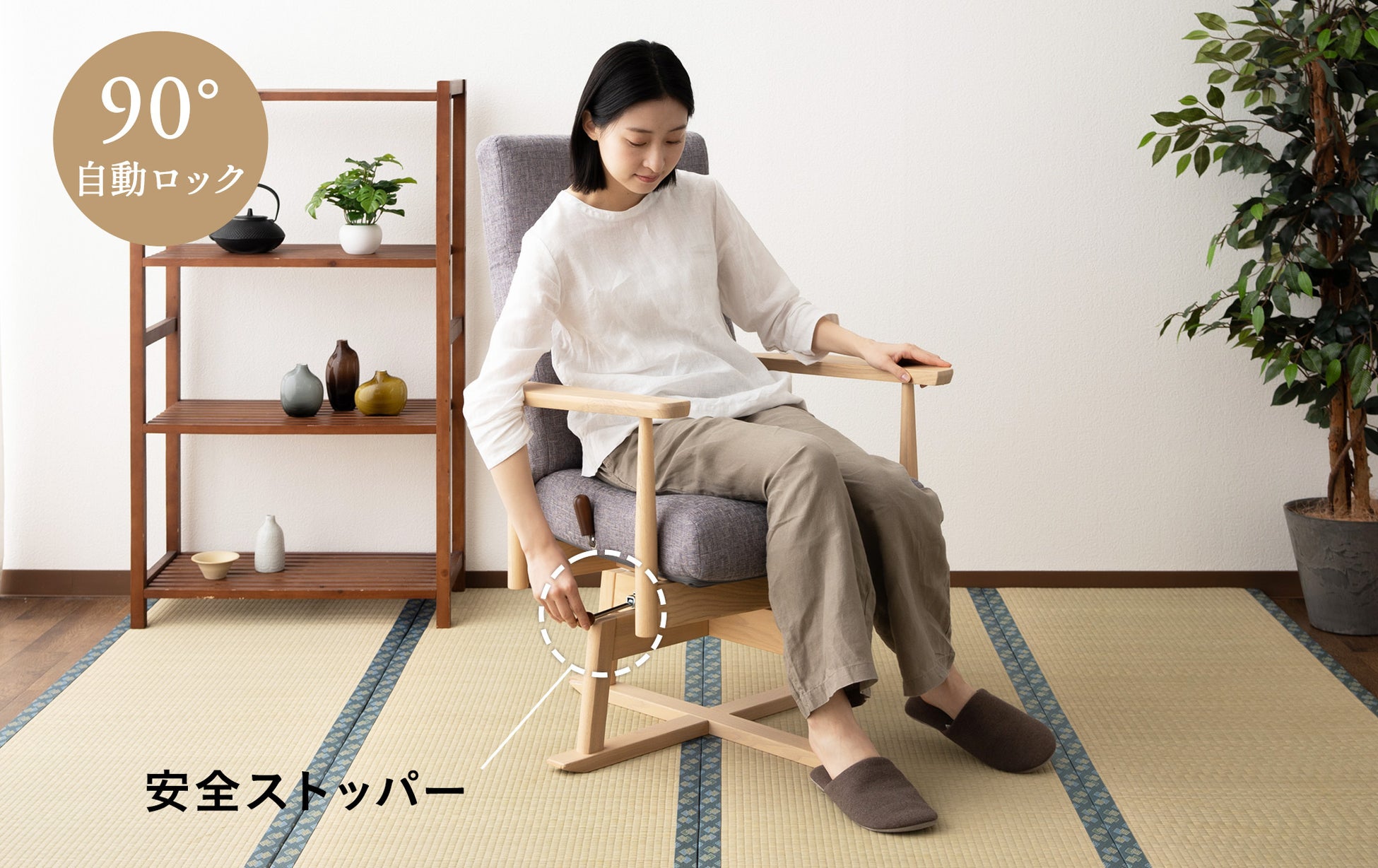 座る時間が長くなったら、家族のためのソファから自分のための椅子へ。“安全ストッパー付き回転高座椅子”が、健やかで快適な寛ぎ時間を提供します。