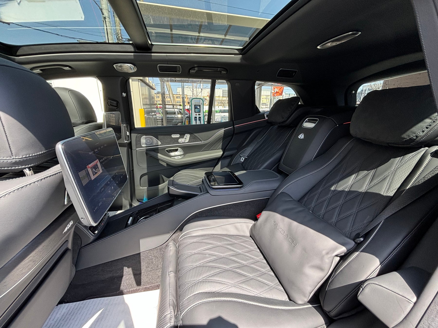 この度導入されたメルセデス・マイバッハ「GLS」はメルセデス・マイバッハ初のSUVモデル。「唯一無二の美とステータス、かつて体験したことのないくつろぎに包まれた移動体験」の実現が図られています。ベース車両のメルセデス・ベンツ「GLS」から3席を取り除き、電動リクライニング機能を備えた2席のキャプテンシートを配置。マッサージ機能を備えるとともに、折りたたみ式テーブルも格納しています。また、前席の後ろには約12インチのディスプレイが設置されており後部座席からお楽しみいただくことが可能です。