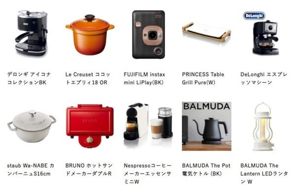 「憧れの流行家電」から「老舗ブランドの高級スイーツ」まで幅広いジャンルが取り揃えられています。