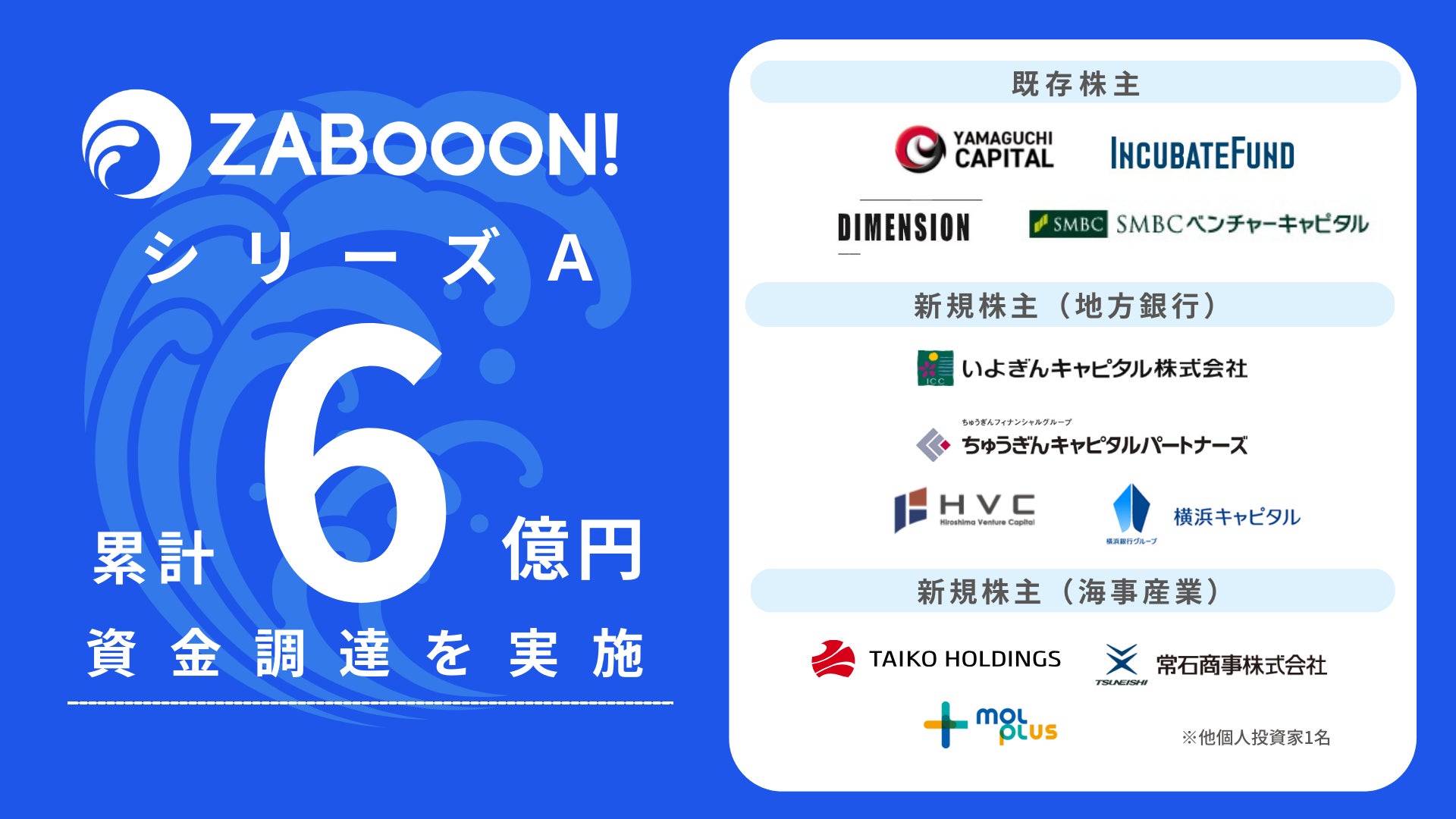 船舶管理プラットフォーム『MARITIME 7』を運営する株式会社ザブーンが、シリーズAラウンドでの資金調達を実施し、累計資金調達額は6億円に