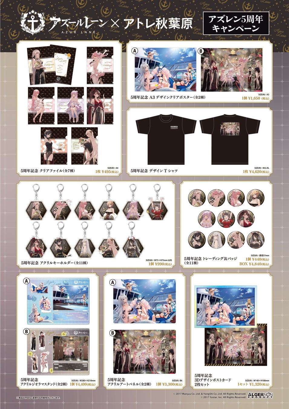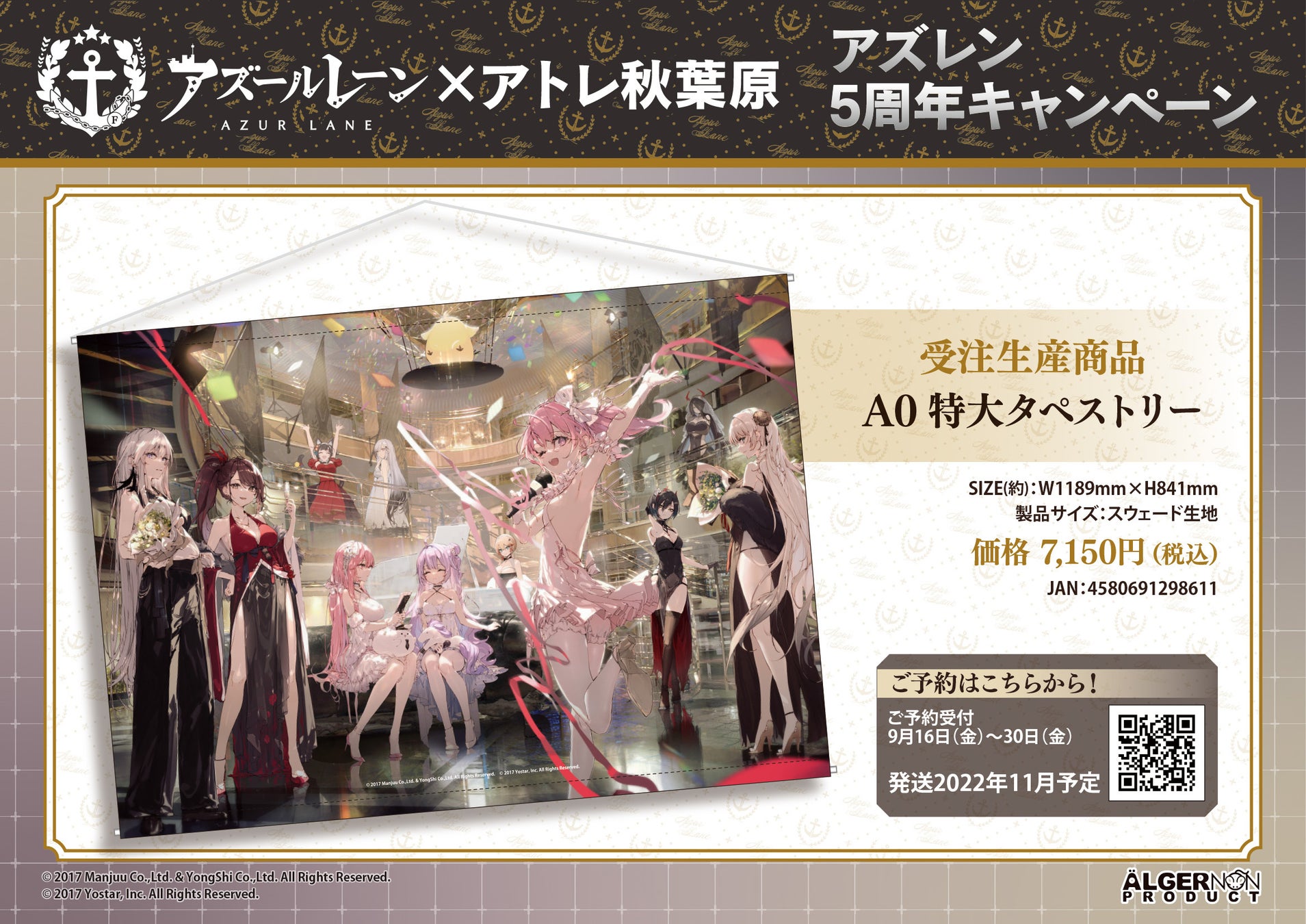 株式会社アルジャーノンプロダクト(本社:東京都台東区、代表:高山 聡士)は「アズールレーン」の配信5周年を記念して、2022年9月16日(金)よりアトレ秋葉原1/2Fイベントスペースにて5周年記念フェア「アズールレーン × アトレ秋葉原 アズレン5周年キャンペーン」を開催致します。