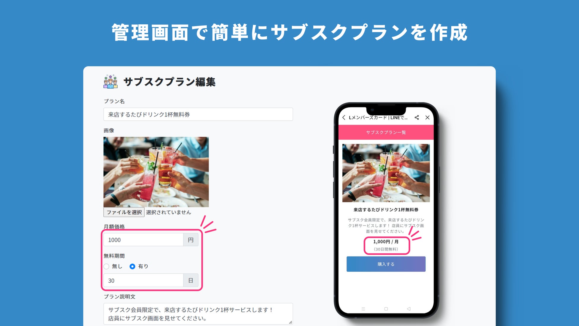 - 管理画面で簡単にサブスクプランを作成できる