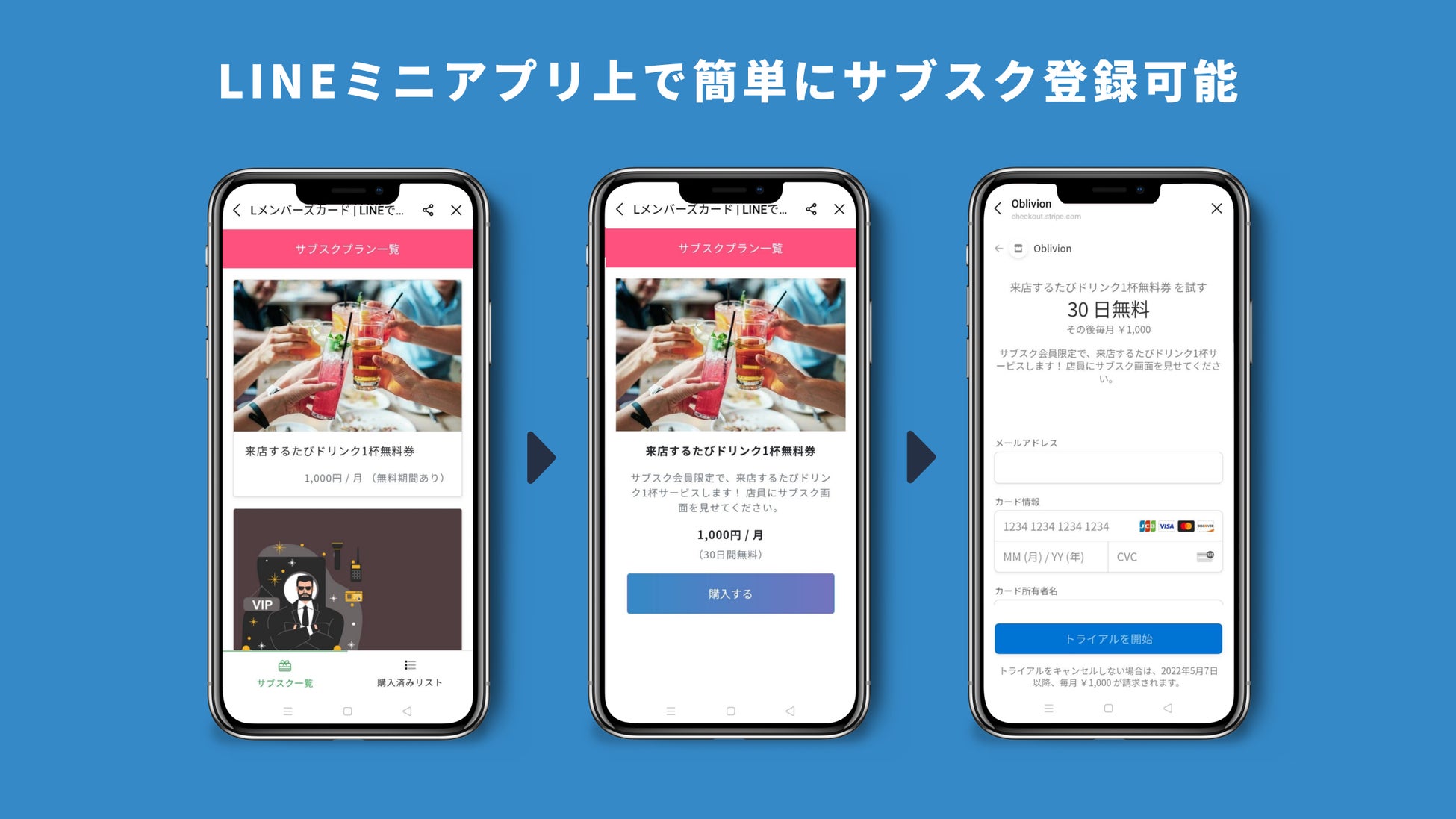 - LINEミニアプリ上で簡単にサブスク登録可能