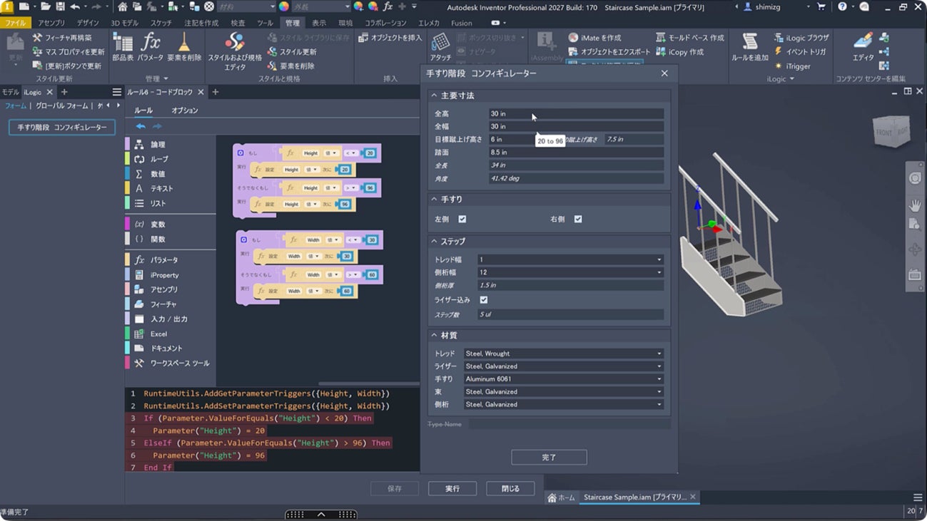 Inventor 2027 では、自動化機能「iLogic」がさらに進化し、新たにビジュアルプログラミング機能「コードブロック」が導入されました。