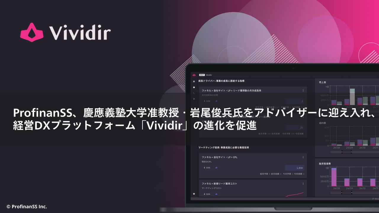 ProfinanSS、慶應義塾大学准教授・岩尾俊兵氏をアドバイザーに迎え入れ、経営DXプラットフォーム「Vividir」の進化を促進