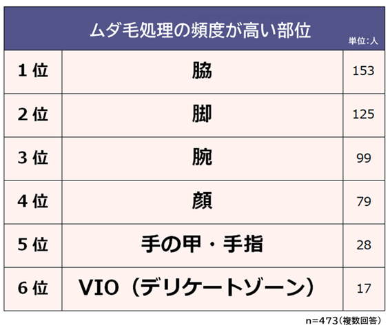 【ムダ毛処理の頻度が高い部位ランキング】女性473人アンケート