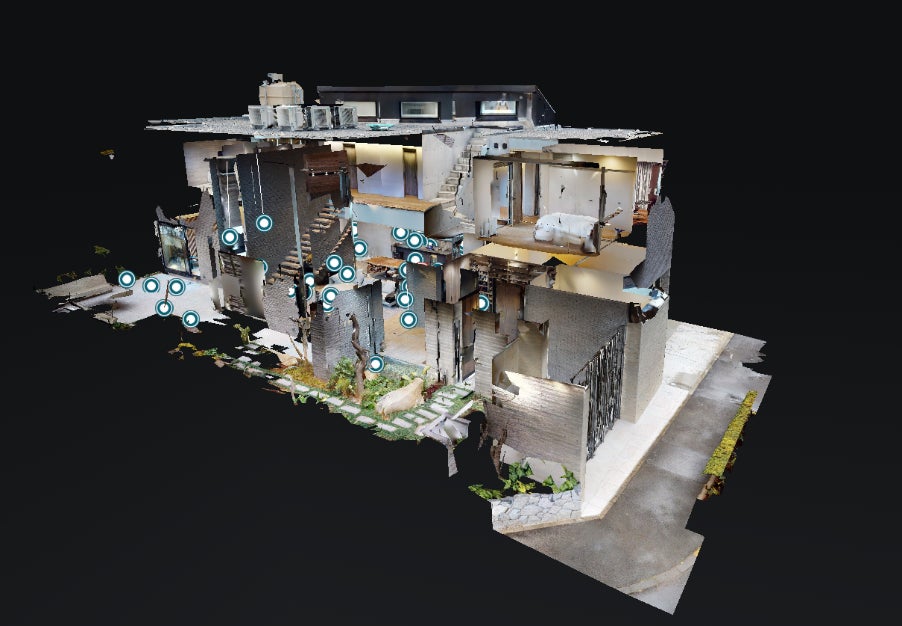 ※2. VRモデルハウス:住宅の屋内を高画質4Kデジタル撮影した画像を使い、オンラインで室内を歩いているように内覧できるVRのモデルハウス。VRモデルハウスには説明動画や解説文の設置ができるので、カタログ以上の訴求も可能になります。本サービスのVRシステムは、米ナスダック上場matterport社(ティッカー:MTTR)の空間データデジタル合成処理技術を採用しています。