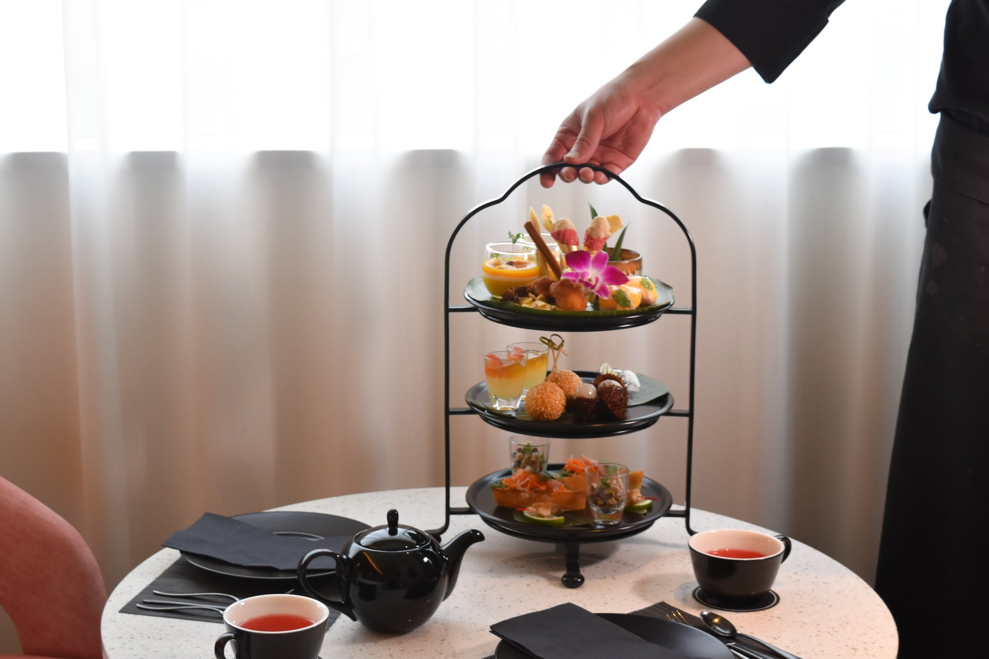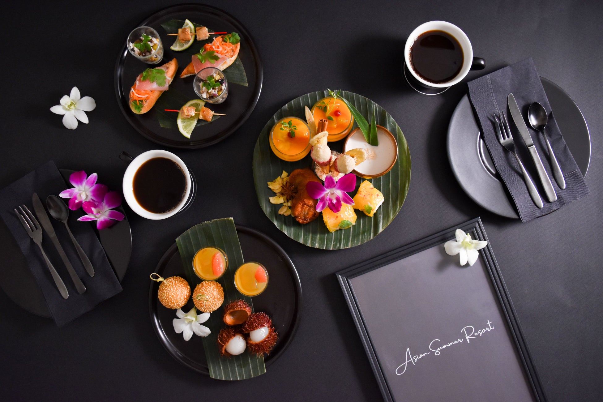 2023年夏のウェルカムアフタヌーンティーはチーフパティシエの山本大輔がアジアの魅力に想いを馳せ、各国のリゾートが目の前に浮かぶトロピカルなスイーツをご用意しました。