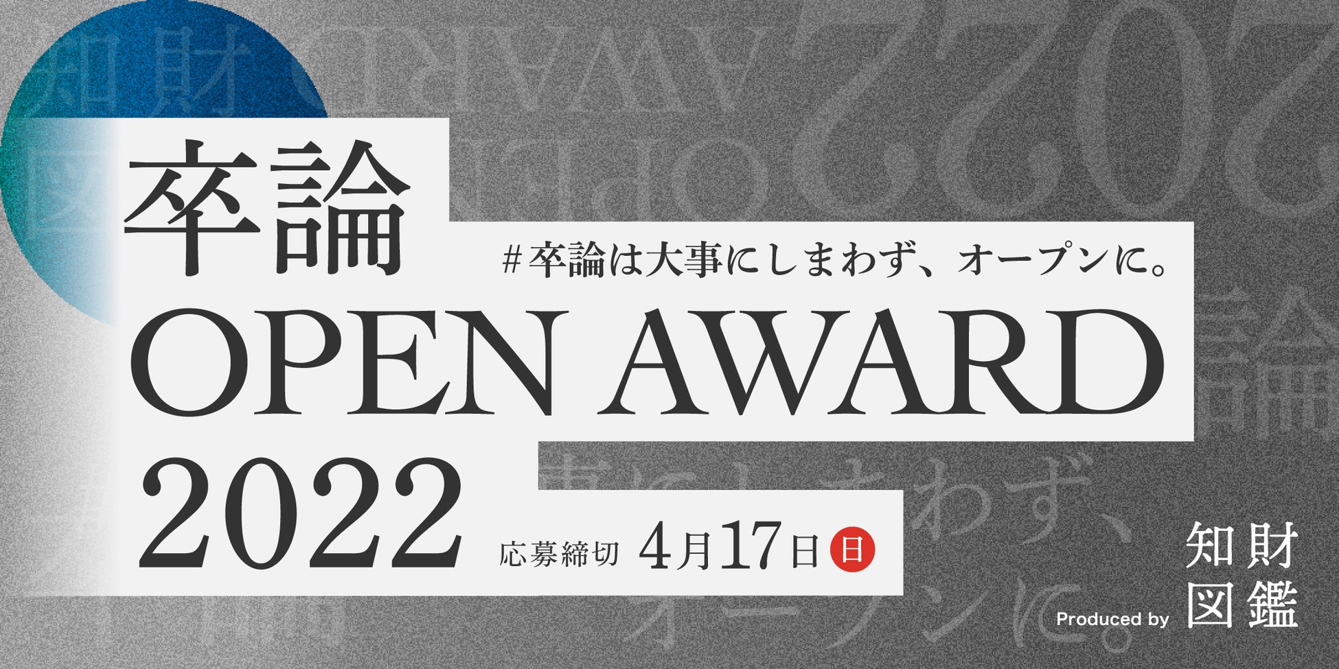 知財図鑑では企業の新規事業を迅速かつ効果的に推進するために、アカデミックな領域の「知的財産」を活用していけるよう、アイディアと知財のマッチング活動を行っています。今回の「卒論OPEN AWARD2022」は、優れた研究を行う学生の活動に焦点を当て、研究室で保管されるだけでなく世の中に広く知らしめることで社会実装を促す狙いがあります。また、志高い研究者の研究成果や背景にある思いを届けることで、学生の就職活動や企業の採用活動などにも影響を与えることを目指しています。