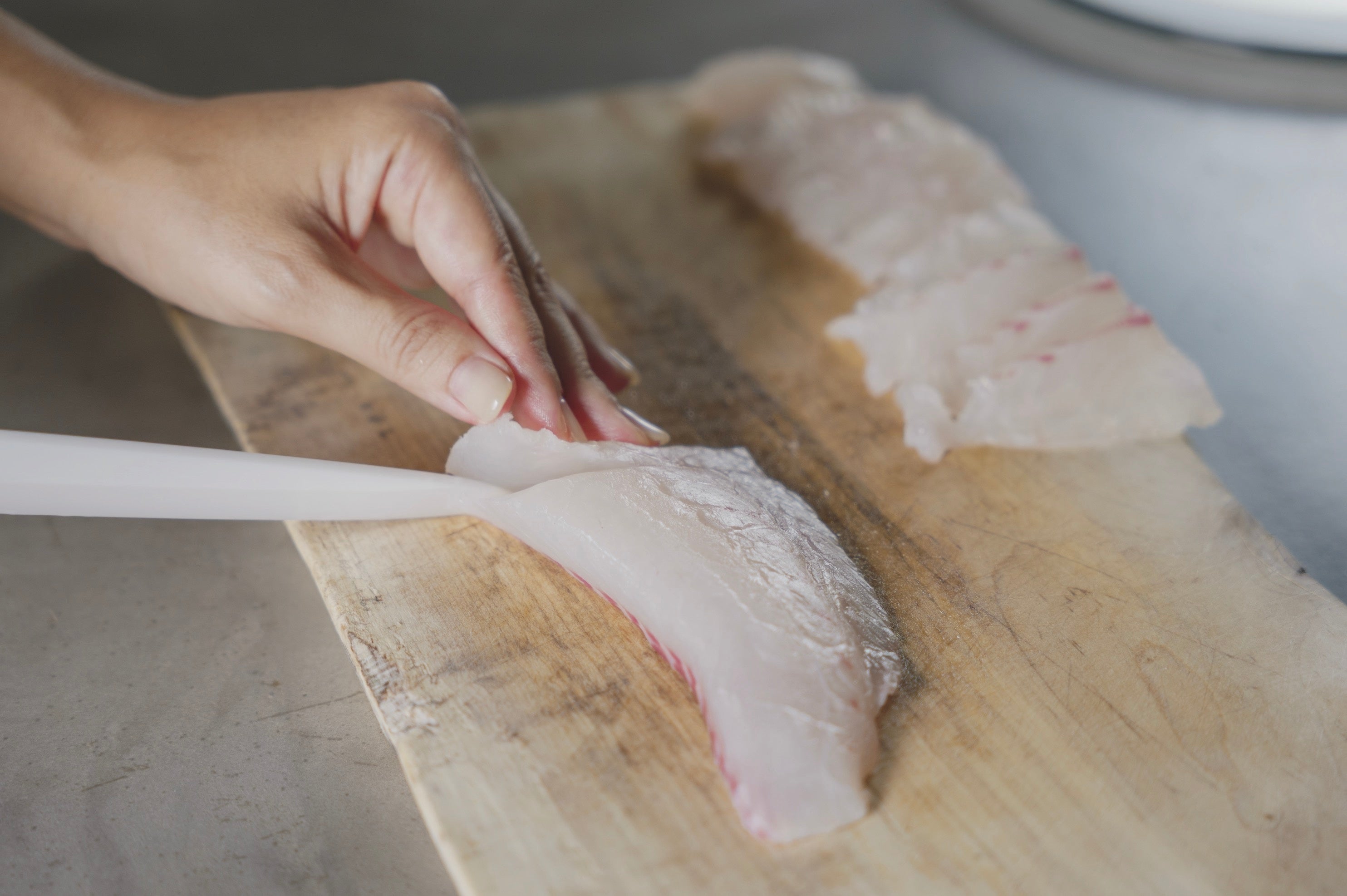 セラミックは金属特有の匂いや味がなく、食材に金属の匂いがつくこともない。白身魚などの繊細な風味を最大限活かすことができ、「おいしく」お刺身を切ることができる。 また、ニンニクなどの強い匂いも刃に残さず洗い流すことができるため、他の食材に味が移ることも防ぐ。