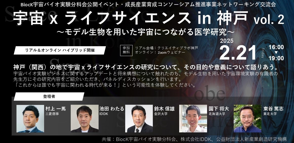 宇宙 x ライフサイエンス in 神戸 vol. 2(BiocK宇宙バイオ実験分科会公開イベント・成長産業育成コンソーシアム推進事業ネットワーキング交流会)を開催いたします