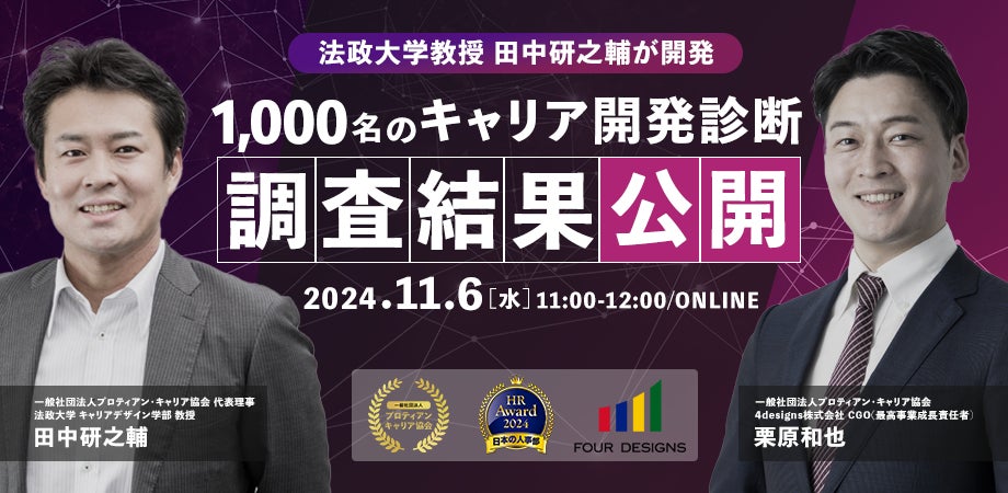 【法政大学教授 田中研之輔が開発】1,000名のキャリア開発診断 調査結果公開
