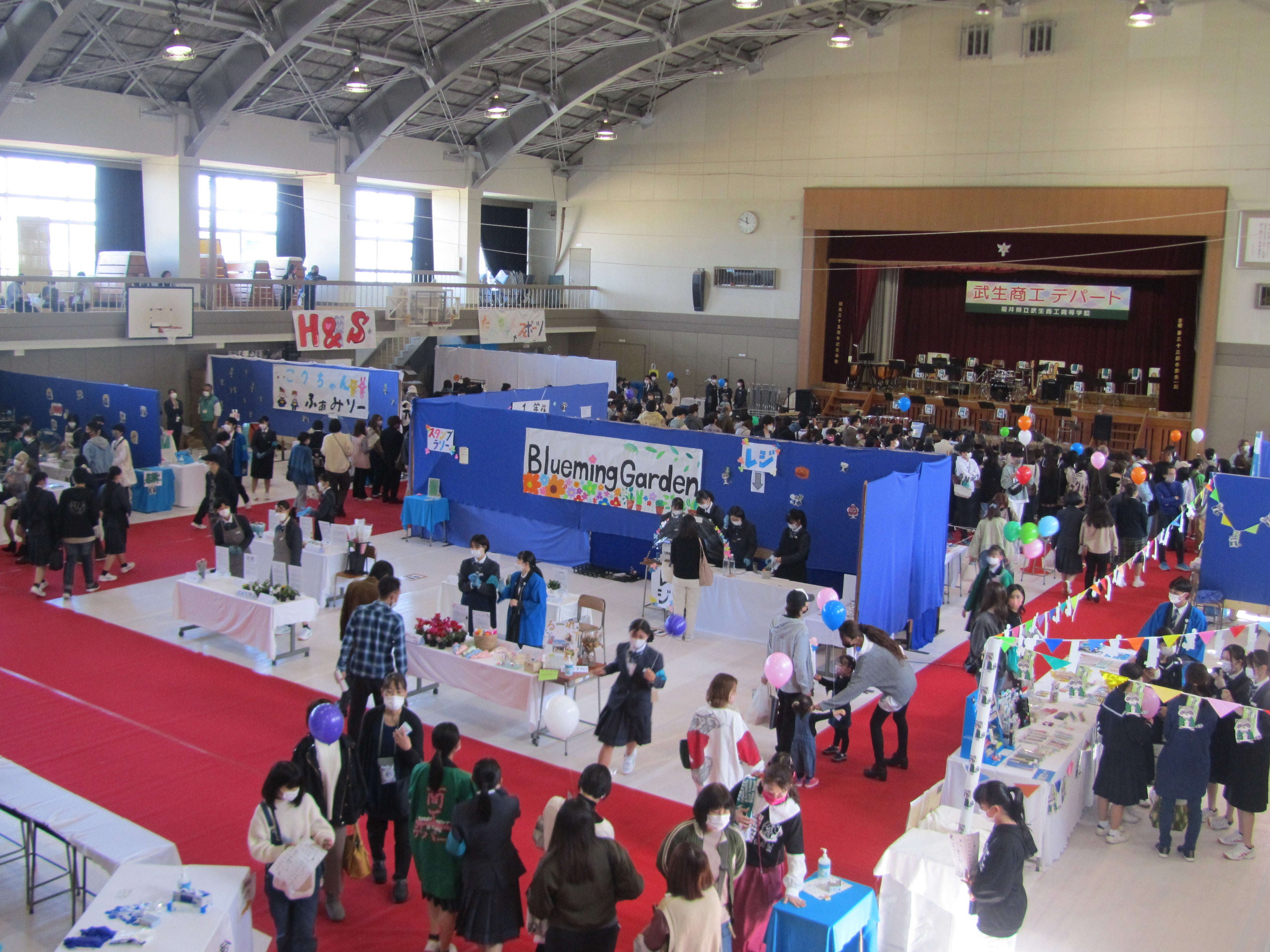 「武生商工デパート」とは、武生商工高校の生徒たちが3学年まで学習した商売の知識を活かし、自ら商店の経営を体験するイベントです。簿記・実務計算・情報処理などの知識を用いながら、仕入れから接客・販売まで一貫して行います。30年以上の歴史があり、毎年3,000人以上が訪れています。