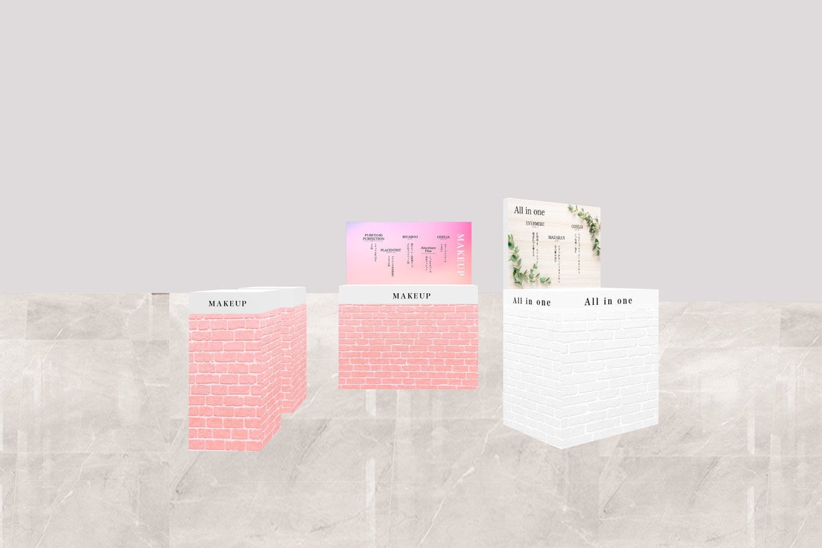 福岡天神店、新宿マルイ店に続き、今回3店舗目としてオープンする有楽町マルイ店は、「newme×ブランド特設ブース」を新たに開発し、各ブランドの世界観を強く訴求した店舗設計となっています。