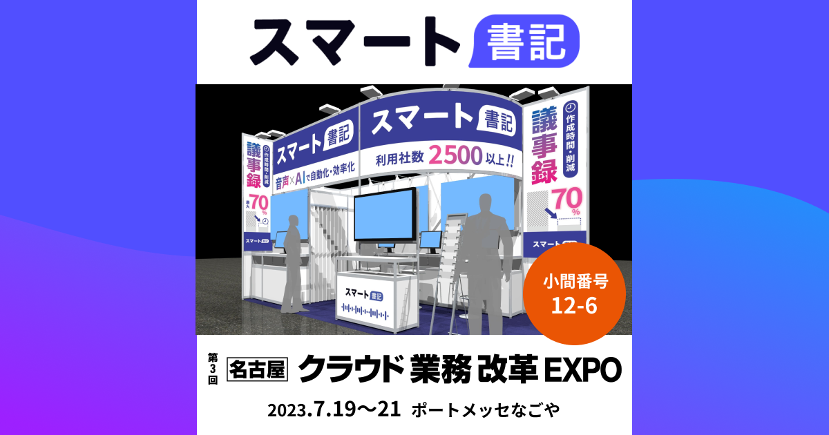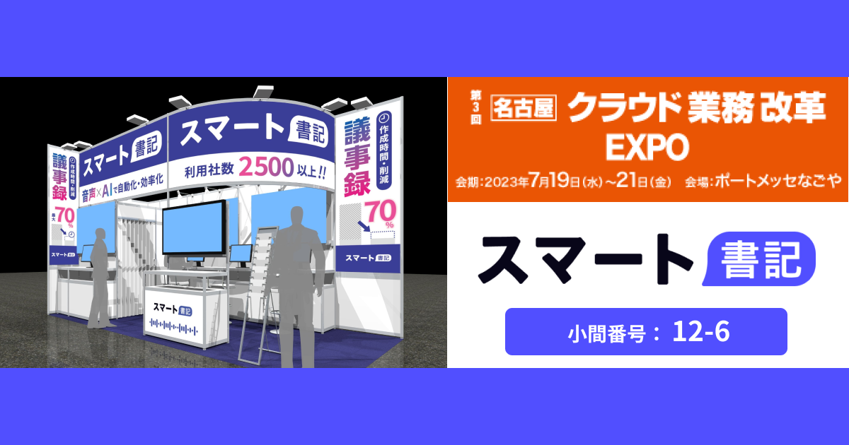 音声×AIで議事録作成を効率化する「スマート書記」「第3回 名古屋 クラウド業務改革 EXPO」出展のお知らせ