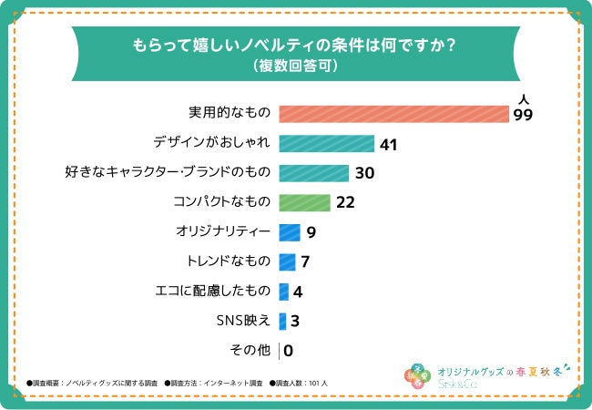 そこで、「もらって嬉しいノベルティの条件は何ですか?(複数回答可)」と質問したところ、