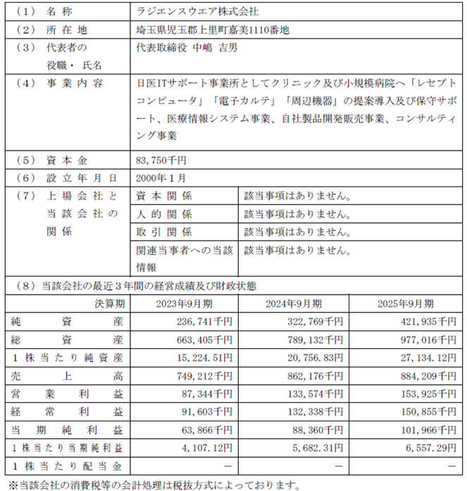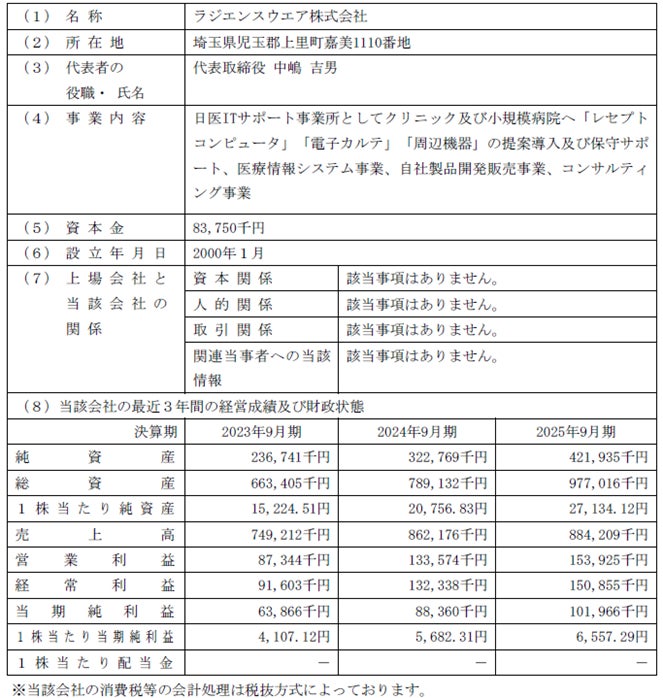 ラジエンスウエア株式会社の株式の取得(子会社化)に関するお知らせ