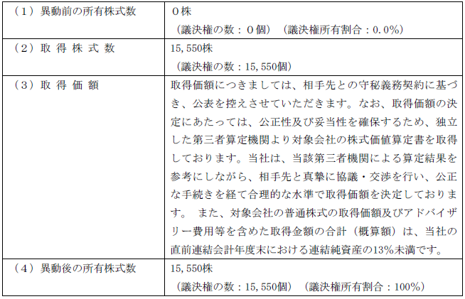 2. 株式取得の相手先の概要