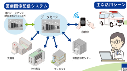山梨大学医学部と共同研究により、救急医療を支援する、医療画像配信システム「MUCS-img」を開発。救急医療の現場では、CT等の画像を専門医が迅速に確認する必要がありますが、専門医が不在の医療機関では即時対応が困難なケースがありました。同研究では、医療画像をスマートフォン等へ迅速に配信する仕組みを構築し、専門医が遠隔地から画像を確認できる環境を実現。