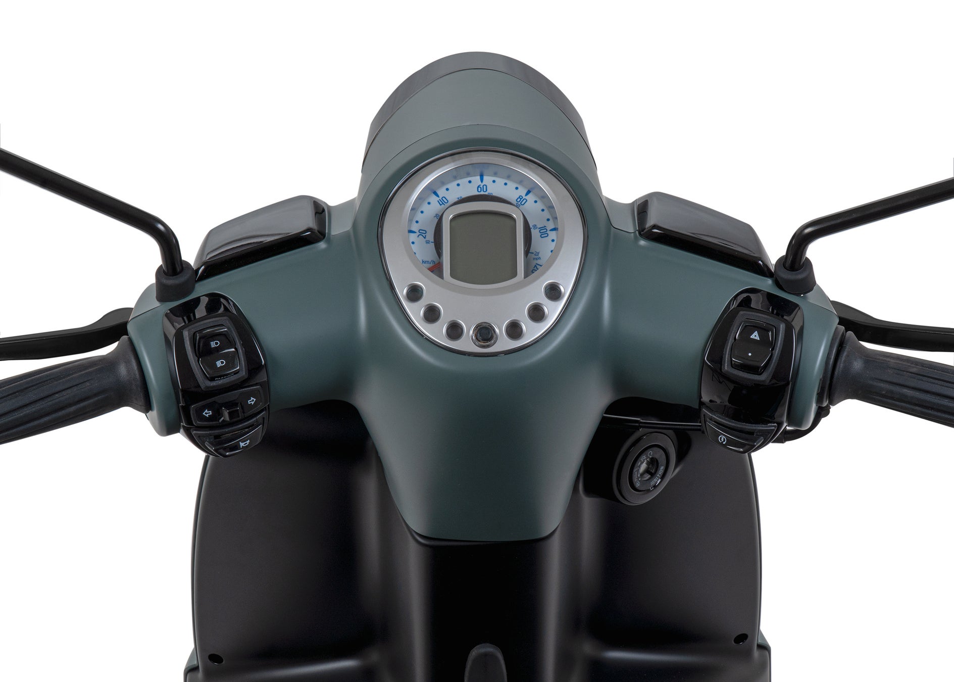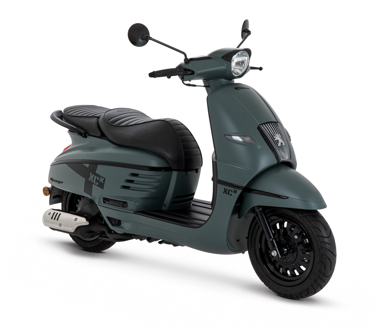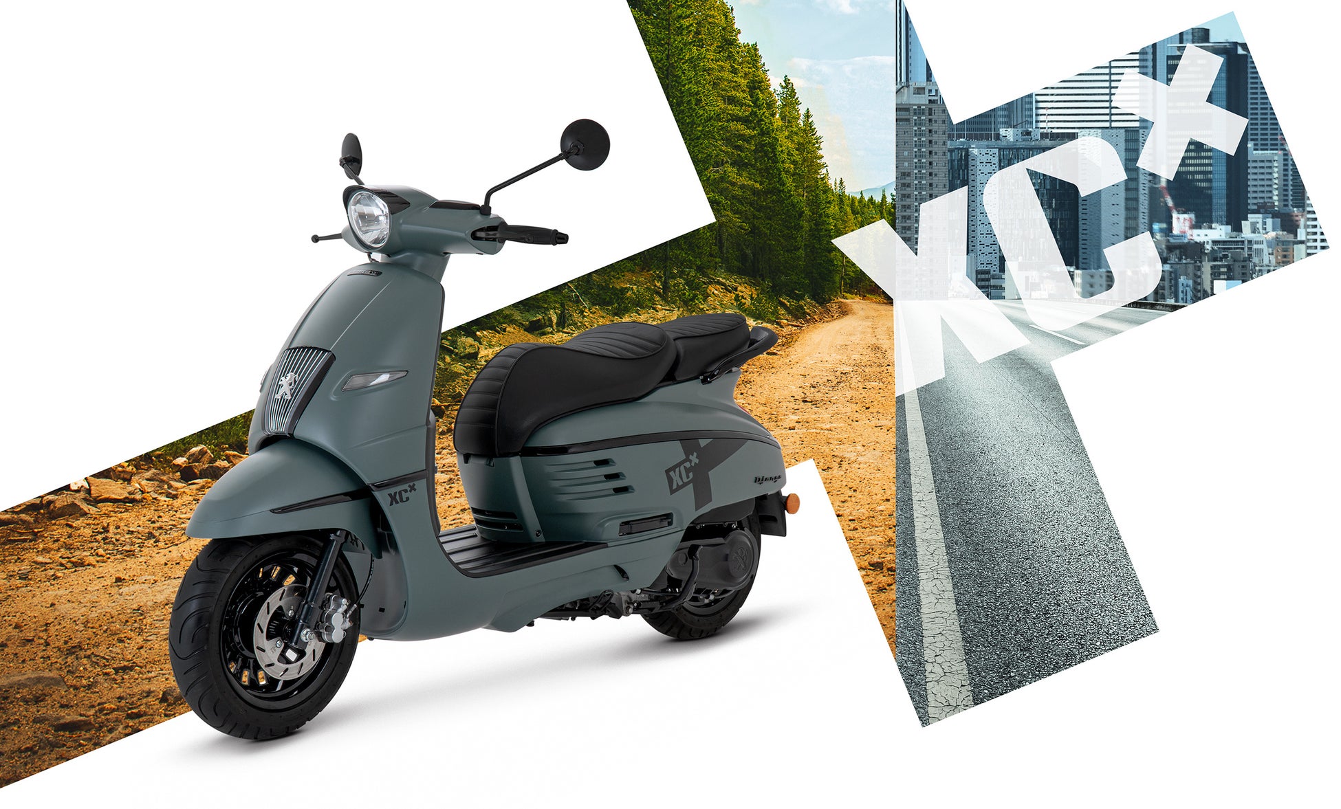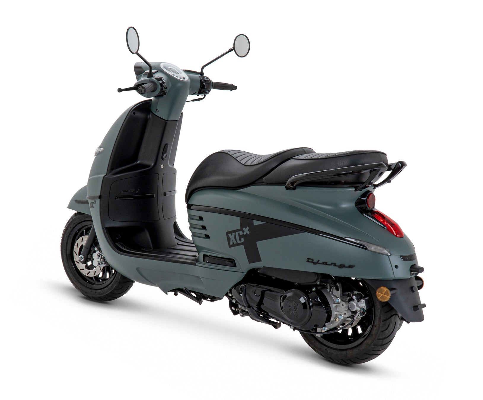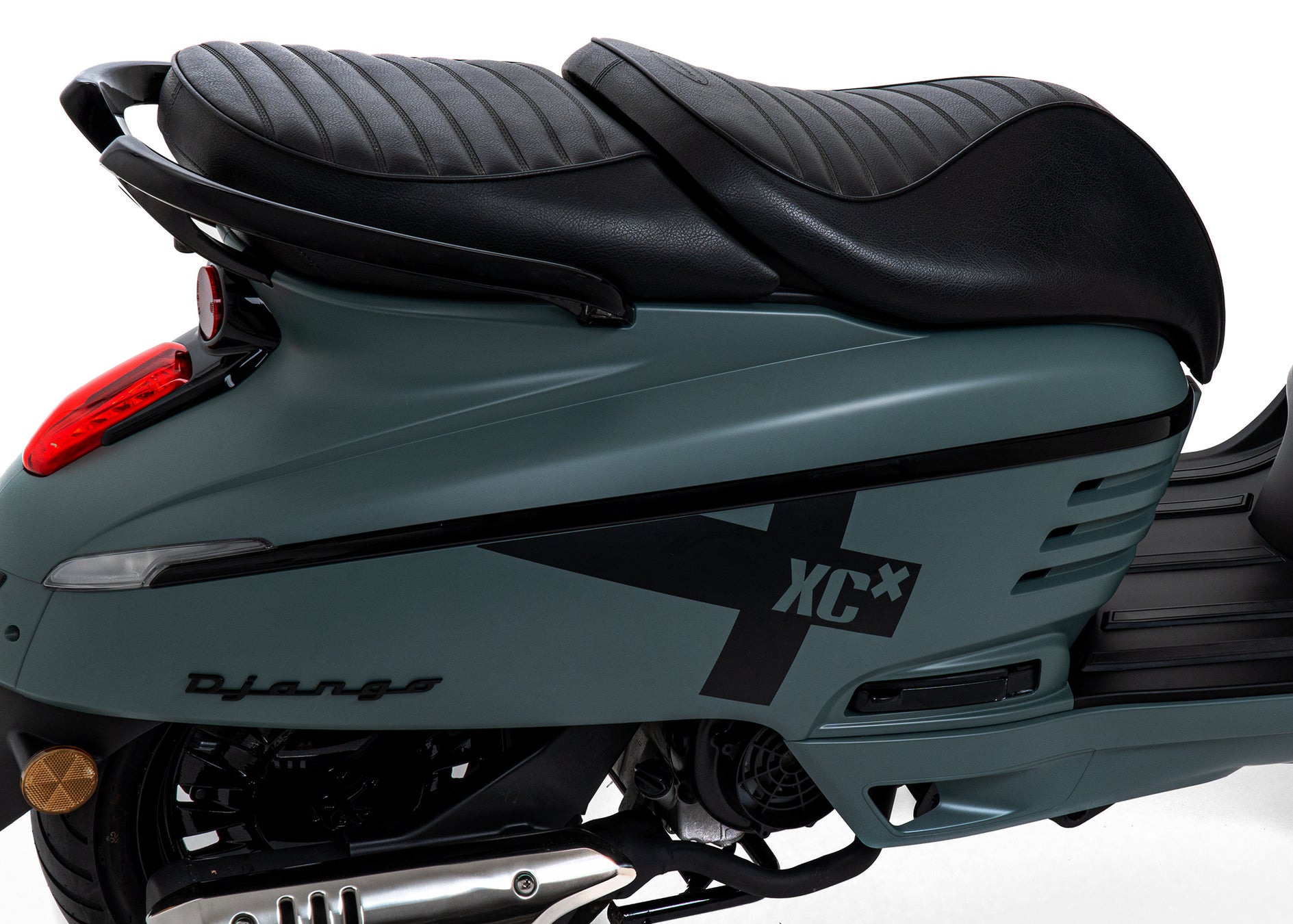エレガントで都会的な印象の強かったジャンゴシリーズに、これまでとは異なる新しいキャラクターのモデルが誕生します。オフロードやミリタリーを連想させる、艶消しダークグリーンのボディカラーを採用。ミラー、ライトバイザー、「PEUGEOT」エンブレム、「Django」エンブレム、操作系パーツ、ボディモール、インナーパネル、フットボード、タンデムグリップ、タンデムステップ、テールライトカバー、ホイール、エンジンカバーなど、車体各部をブラックアウトすることで、ヘビーデューティで精悍なイメージを高めています。サイドカウルに表示された「XC」は、クロスカントリーの意味。ストリートだけでなくさまざまな道を走破することもできるという、ジャンゴが持つ隠れた一面(SHADOW)を引き出し、新しい楽しみ方を提案するモデルです。