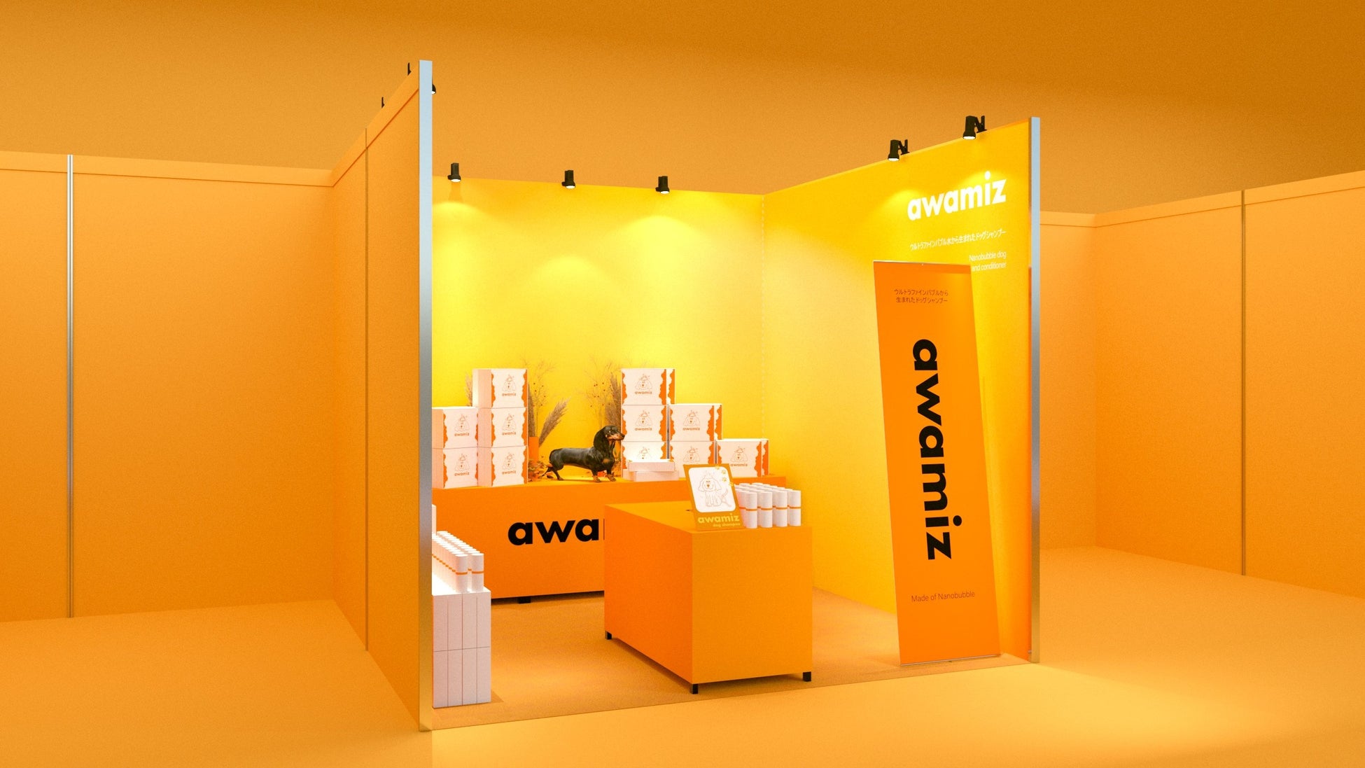 「awamiz」は、世界が認めるウルトラファインバブル技術を採用した犬用シャンプーで、犬の皮膚と被毛をやさしく洗い上げることが特徴です。今回のインターペット大阪では、商品の販売だけでなく、実際にシャンプー体験ができるブースを設け、ペットとの特別なひと時を提供します。
