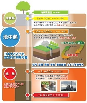 地中熱とは地表からおおよそ地下200mの深さまでの地中にある熱のことを指し、このうち深さ10m以深の地中温度は季節に関わらず、ほぼ安定している。夏は外気温より冷たく、冬は外気温より暖かい性質を持っている。この安定した熱エネルギーを地中から取り出し、冷暖房や給湯、融雪などに利用することを「地中熱利用」と呼ぶ。その利用方法は、ヒートポンプシステム、空気循環、熱伝導、水循環、ヒートパイプの5つに分類することができ、用途に合わせて選定することになる。