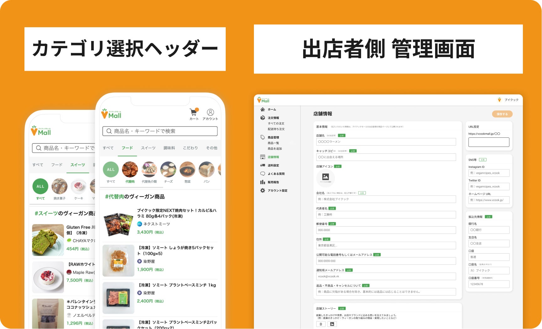 そこで僕たちは、「想いを持ってヴィーガン商品を生み出す事業者」と「求めるヴィーガン商品と出会えない消費者」をつなぐブイクックモールの開発に取り掛かりました。
