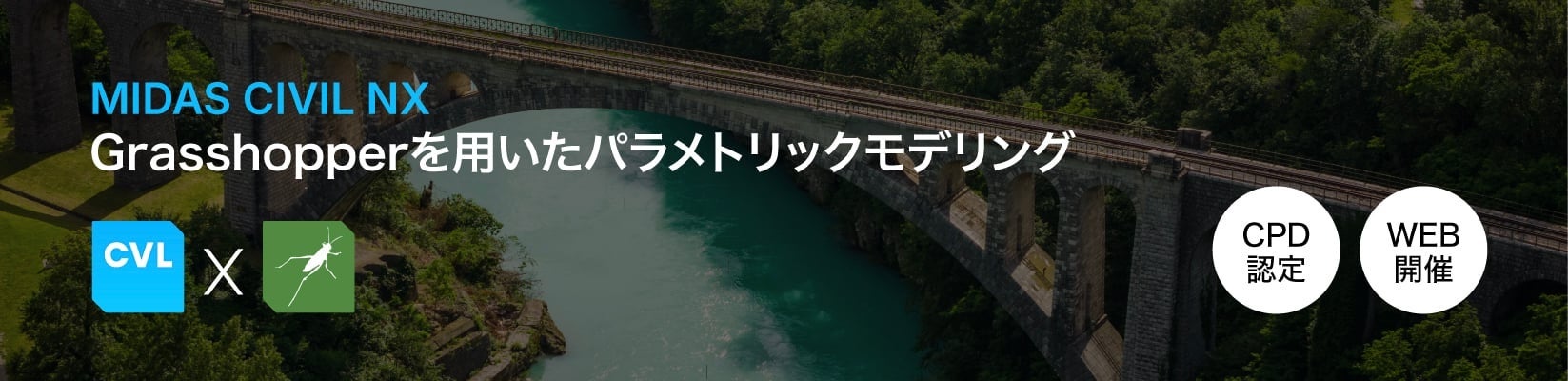 本セミナーは、2024年9月および2025年3月に全世界向けに開催した「MIDAS CIVIL NX × Grasshopper WEB技術セミナー」のライブ配信内容を再編集し、日本国内向けに期間限定でオンデマンド配信するものです。