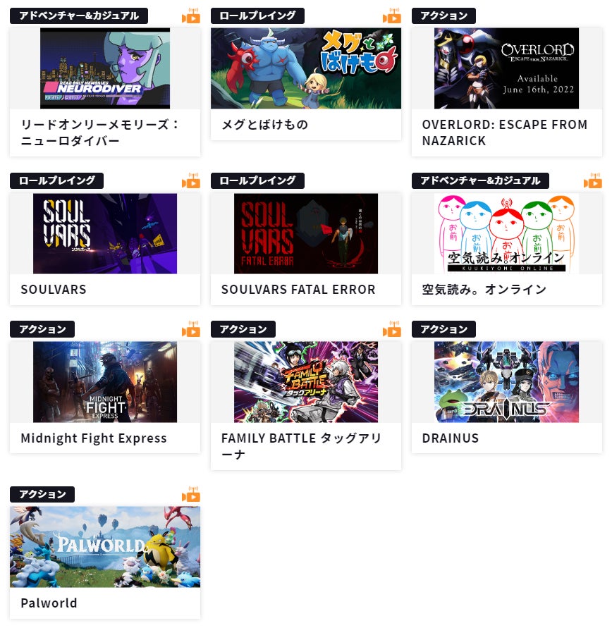 また、タイトルごとにゲーム実況配信が可能かどうかも確認することができます。