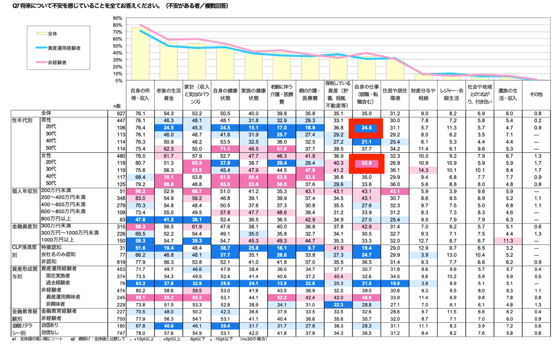 - 自身の仕事への不安が少ないほど、資産運用を楽しめている
