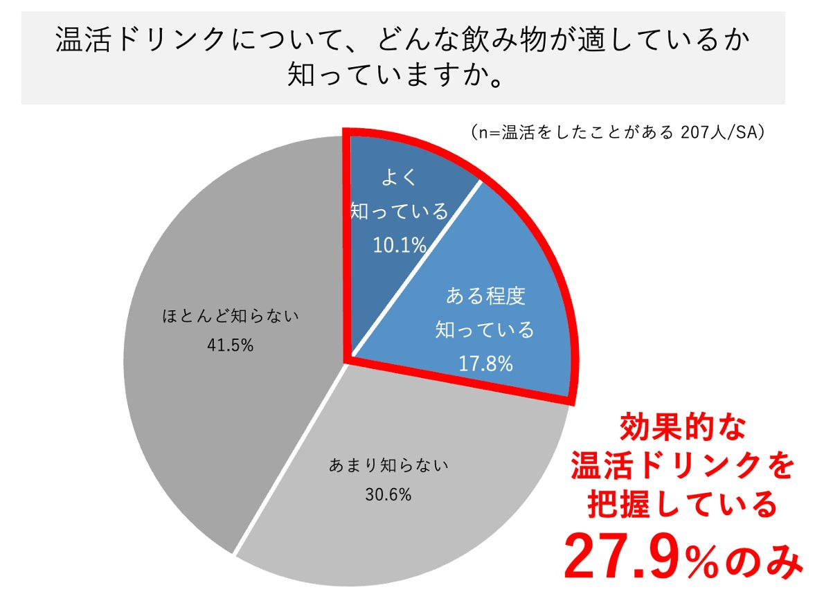 •温活ドリンクについてどんな飲み物が適しているか知っていると回答した人は27.9%にとどまり、7割以上が知らないという結果に。