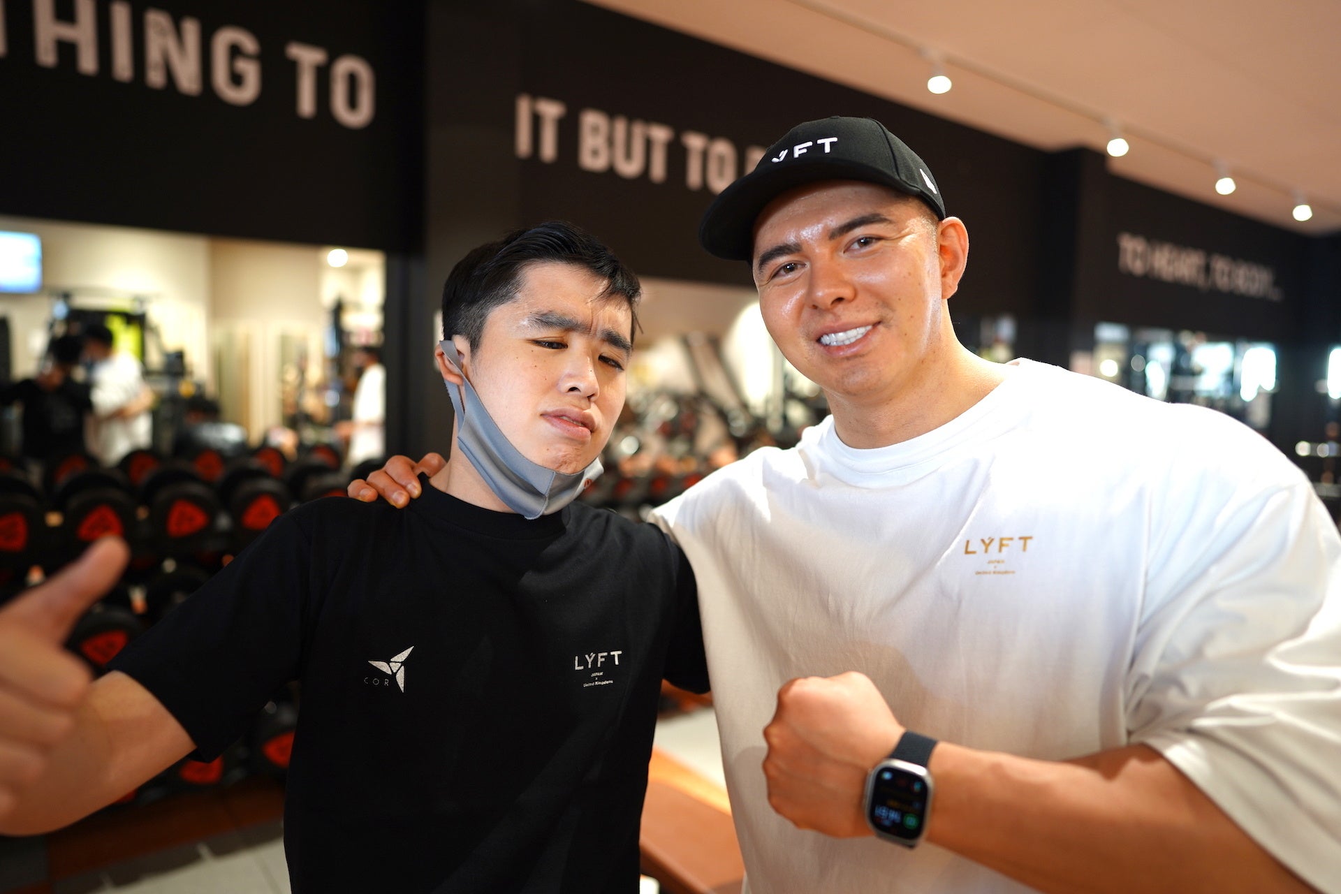 “せっかくトレーニングをするならば、汗をかく程おもいっきり楽しんでもらいたい”と自身がCEOを務めるフィットネスブランド「LÝFT(リフト)」のトレーニングウェアを利用者の方々にプレゼントし、実際にトレーニングウェアを纏いトレーニングを行いました。