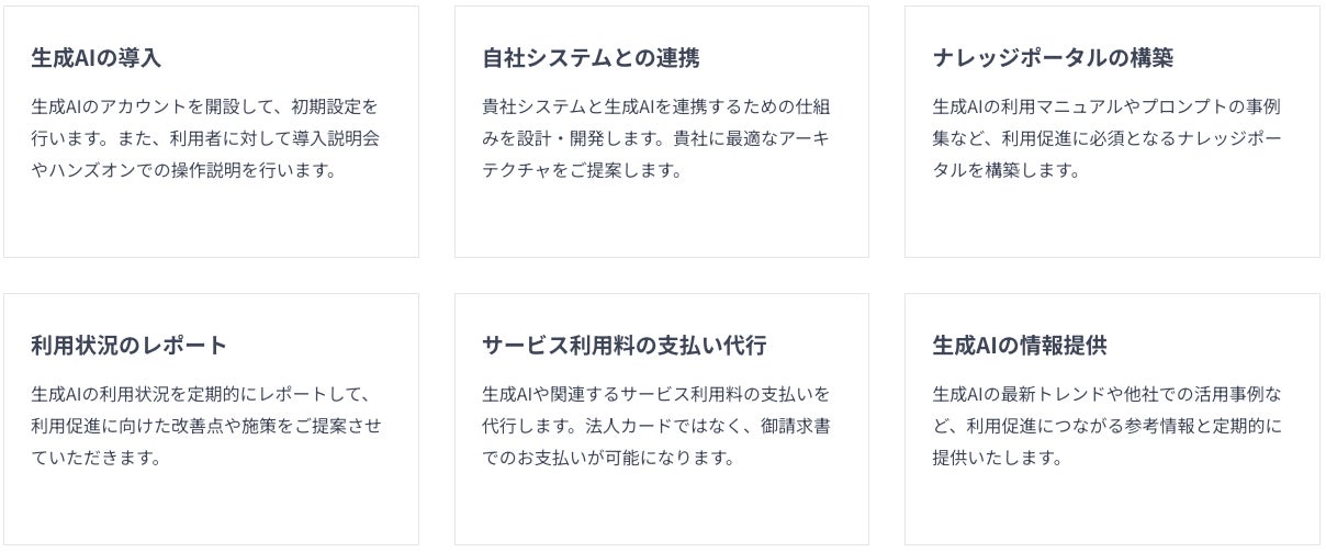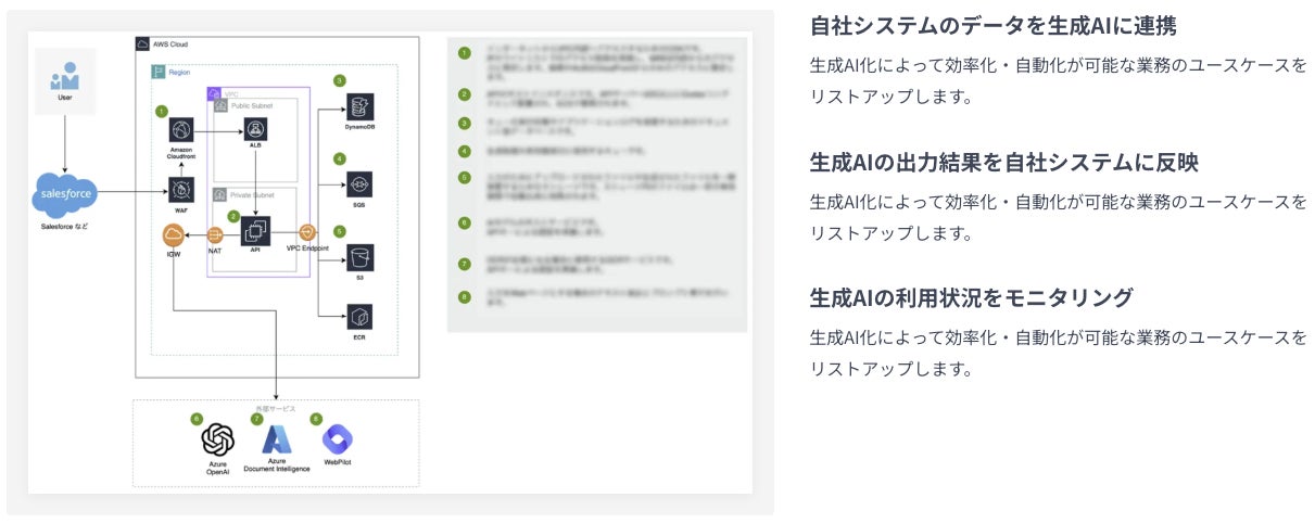 業務システムとの連携やセキュリティなど、導入時の課題になりやすい点を解消し、顧客専用の生成AI環境を構築・運用します。