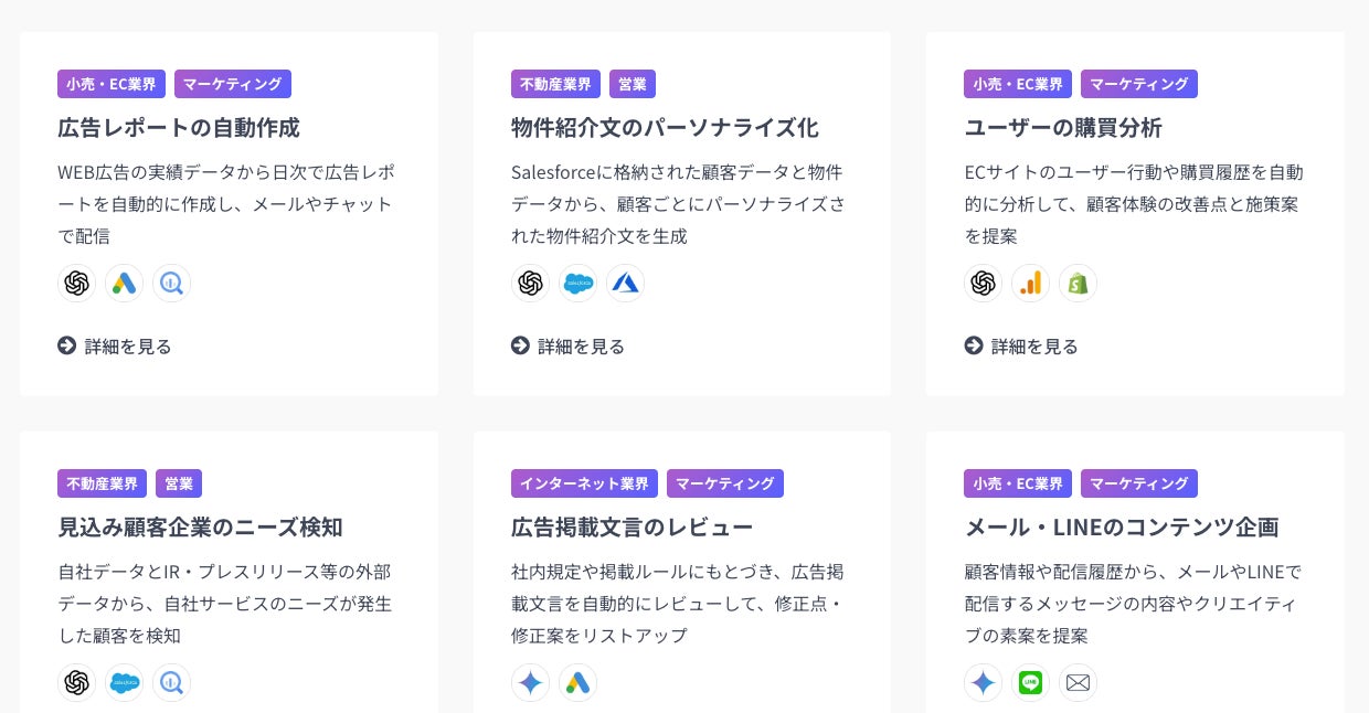 チャット形式の生成AI活用だけではなく、自社システムと生成AIを連携させることで、業務でのより深い活用を可能にします。