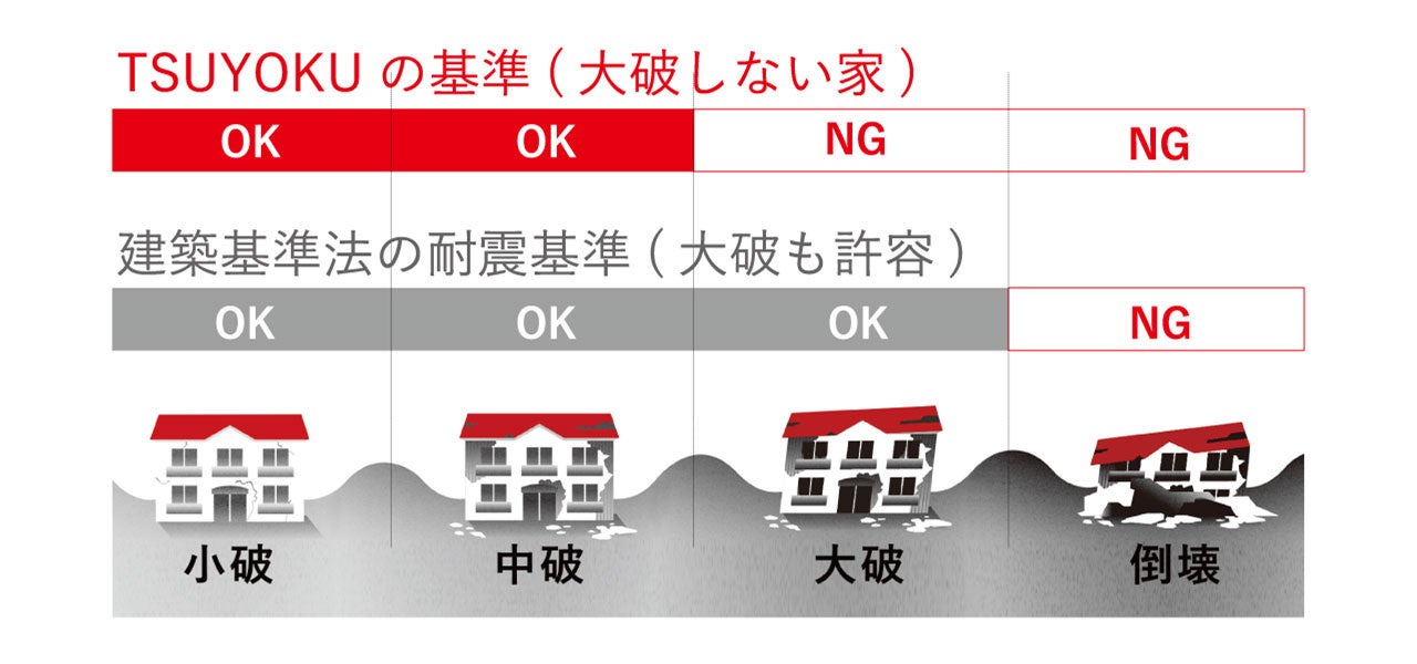 「TSUYOKU」とは、私たち耐震建築家※が自ら定めた、独自の耐震基準です。